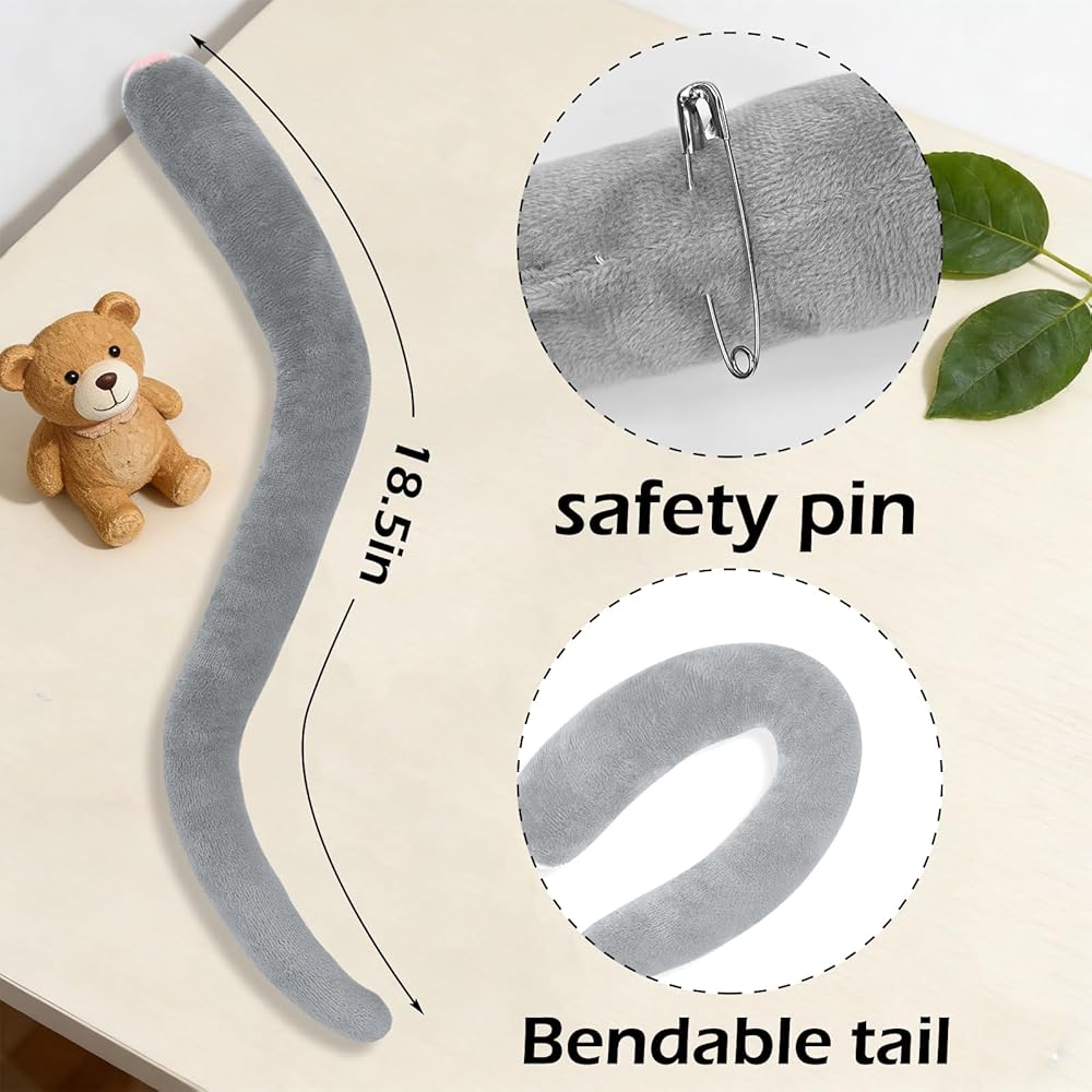 Exquisite & Realistic Details: Neatly stitched gray old mouse ears, flexible tail, secure-fitting nose cover, and cute brooches make your mouse ears costume vivid and eye-catching.