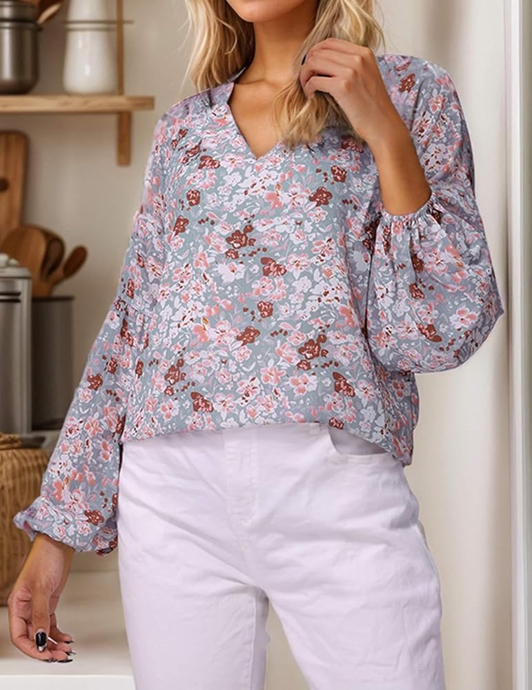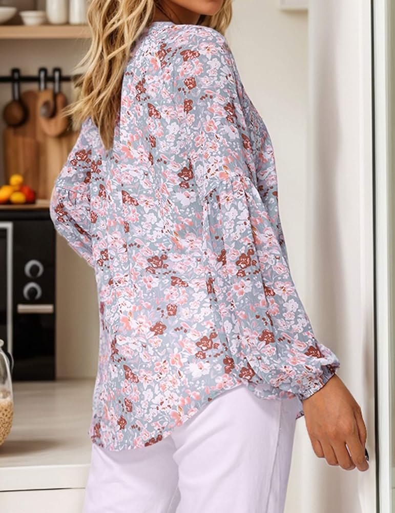 Bohemian Elegance: Infused with a fashion casual bohemian flair, these womens boho tops stand out with its elegant floral print, v neck and lantern sleeves, creating an effortlessly chic and relaxed aesthetic