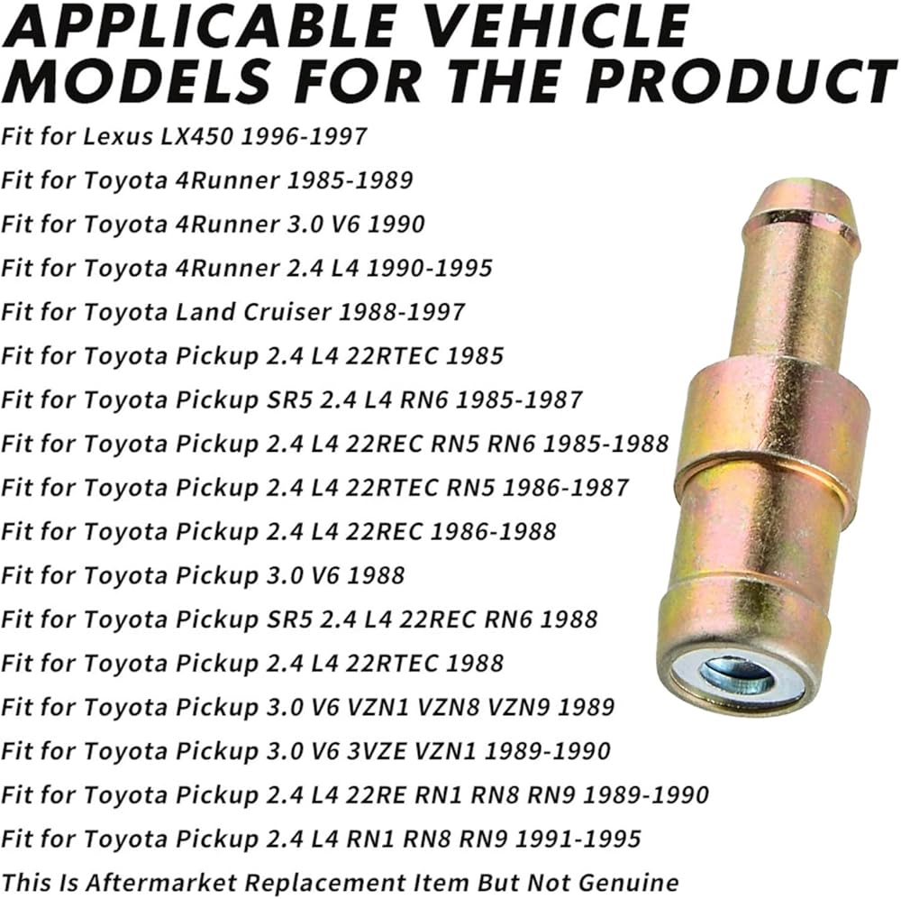 Good match:Our PCV Valve & Grommet Kit is compatible for Lexus LX450 1996-1997, for Toyota 4Runner 1985-1989, for Toyota 4Runner 2.4 L4 1990-1995, and for Toyota Pickup 2.4 L4 RN1 RN8 RN9 1991-1995, and so on. This ensures a good fit and simple installation