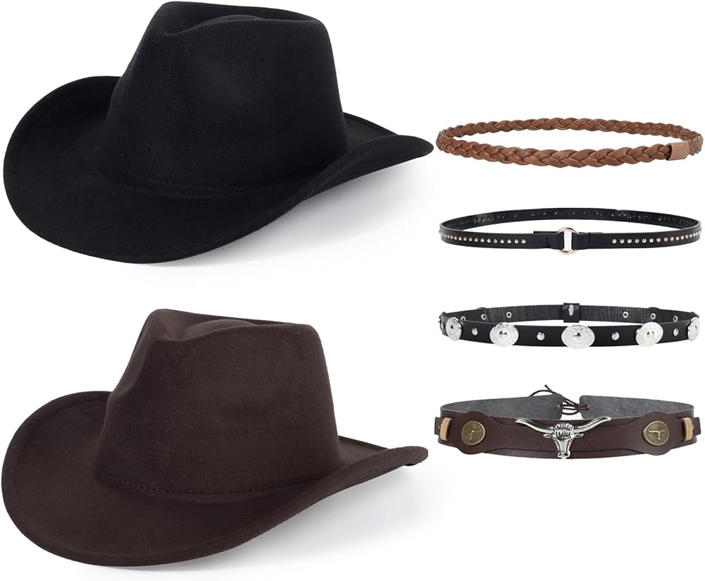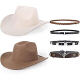 【2 Pack Western Cowboy Hat】4 different styles of belts, allowing you to express your favorite color in different styles. You can wear them with your partner, friends, and family.