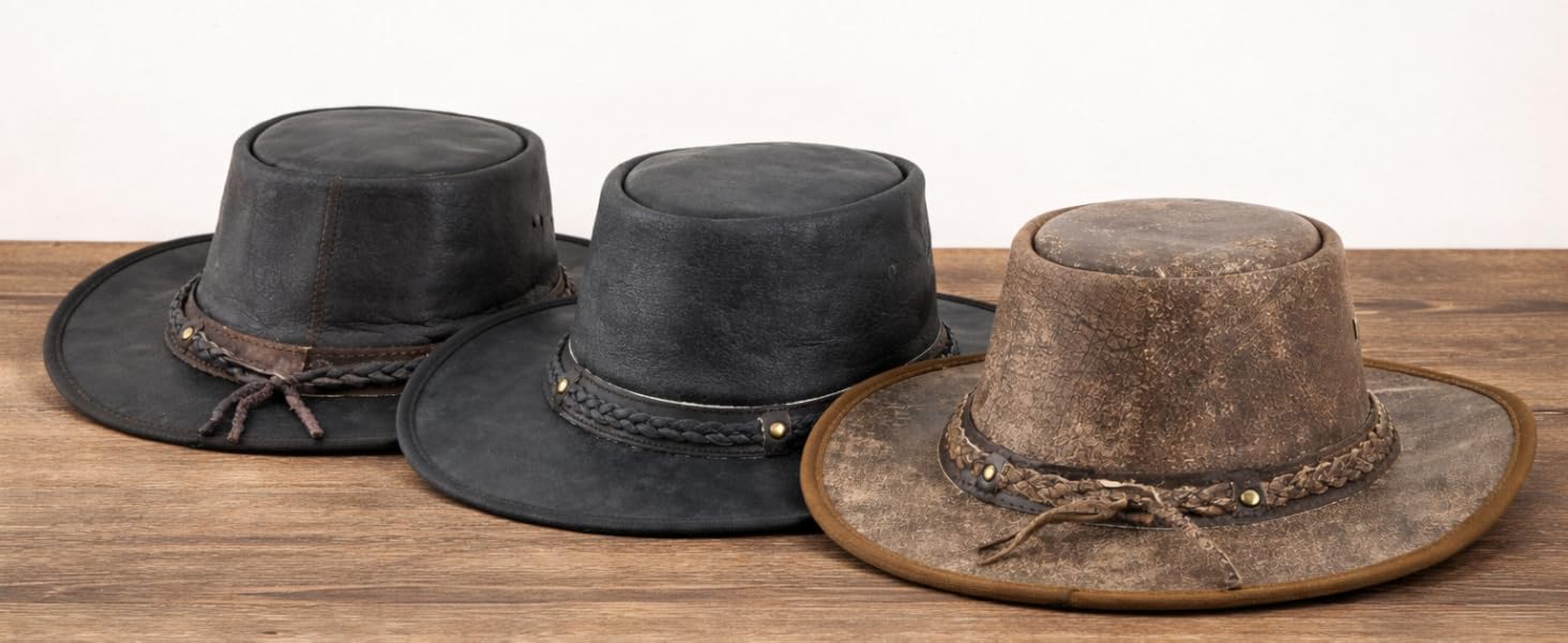 - Braided Leather Hatband – Western charm meets rugged detail around the crown.