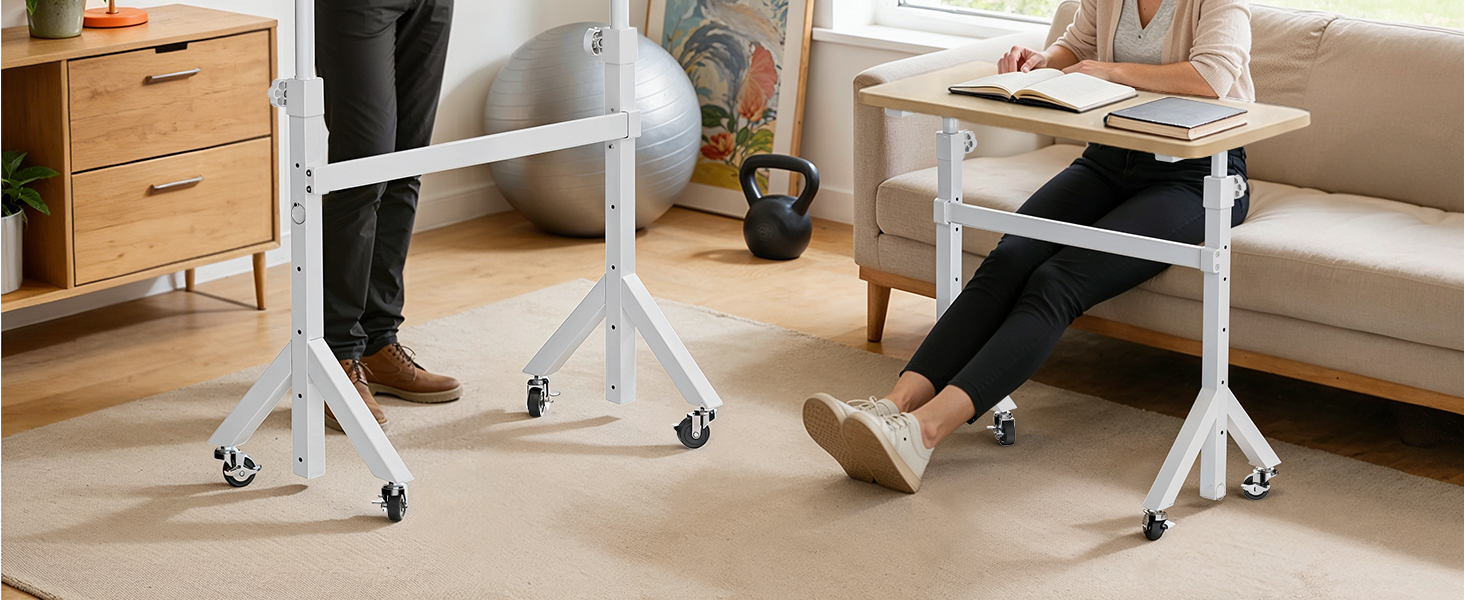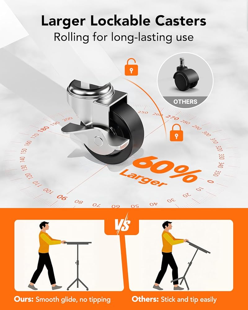 Stable Three-Leg Design: Experience the stability you deserve at work. Our mobile stand up desk features a sturdy triangular leg design that ensures maximum support. Unlike traditional designs, this structure offers added security, preventing wobbling or tipping, even when adjusting to higher settings.