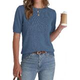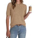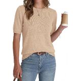 FEATURES: Short Sleeve Sweater for Women/ Work Blouses for Women/ Sweater Top/ Knit Tops for Women/ Boho Tops for Women/ Classy Tops for Women/ Business Casual Tops for Women/ Womens Blouses/ Women's Clothing/ Cute Shirts for Women/ Summer Sweaters for Women/ Dressy Tops for Women/ Cozy Sweaters for Women/ Fashion Clothing/ Old Money Clothes Women