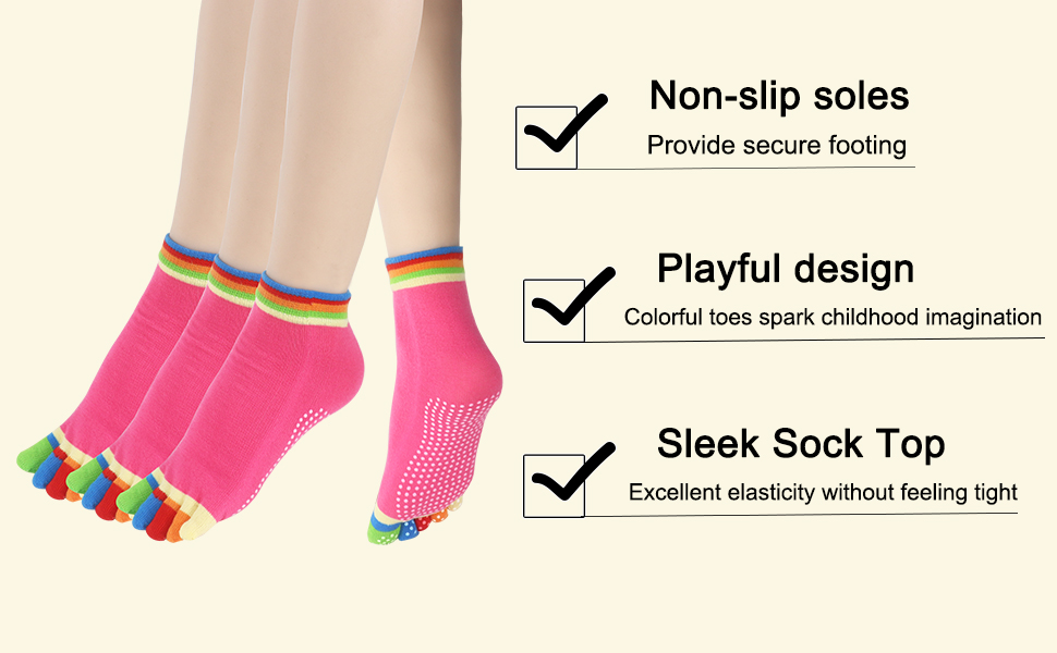 Extra Thoughtful Touches: Playful colorful toes and an elastic ribbed cuff add a fun stylish vibe. Perfect for yoga, hot yoga, Pilates, barre, ballet, gym workouts, studio classes, and dance practice