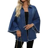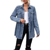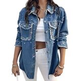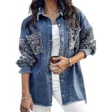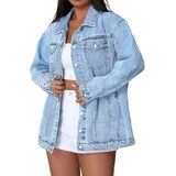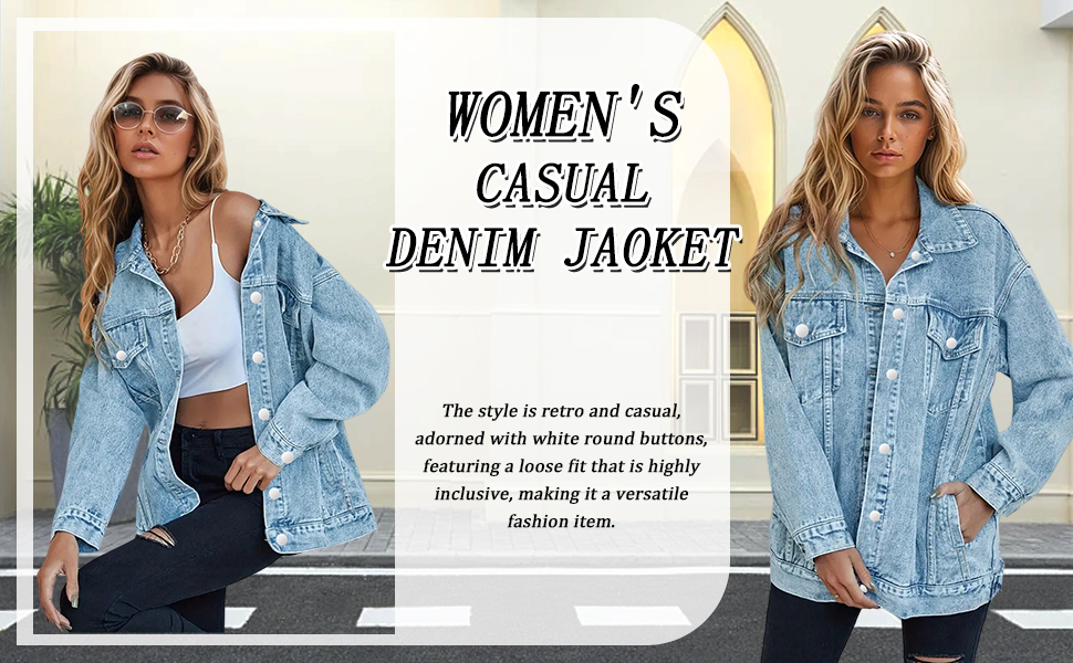 The women's lightweight and oversized stretch denim jacket is made of high-quality, high elasticity lightweight denim fabric, with a medium blue main body embellished with light colored polished white on the chest and shoulders. The retro atmosphere and comfort coexist, and the design integrates simplicity, high elasticity comfort, trendy, retro style and classic, with sizes ranging from 1XL-4XL.