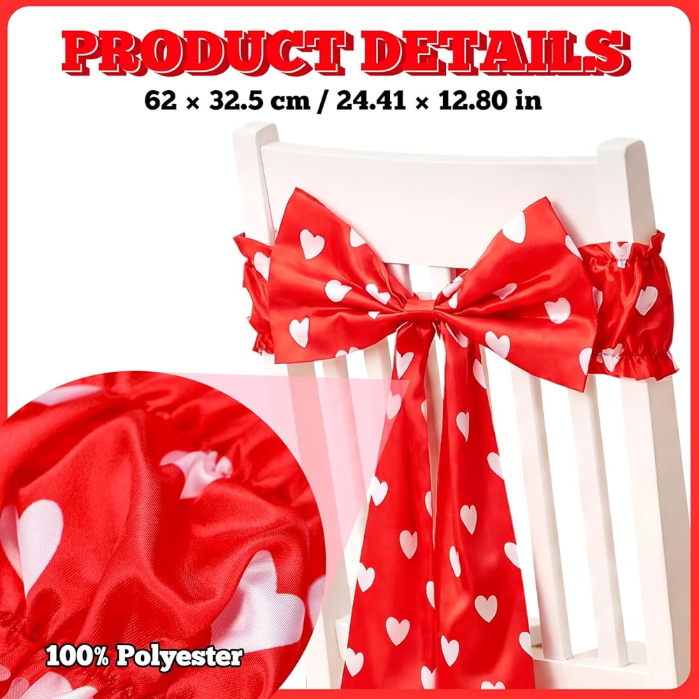 Immerse your event in a vibrant ocean of color with these stunning heart-shaped chair covers. Their eye-catching designs and bold colors add a festive touch to any occasion. Whether adorning your wedding reception or serving as glamorous red chair back bows, their vibrant hues will infuse a room with energy and sophistication, captivating guests with every detail.