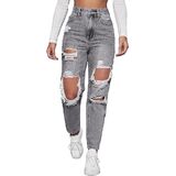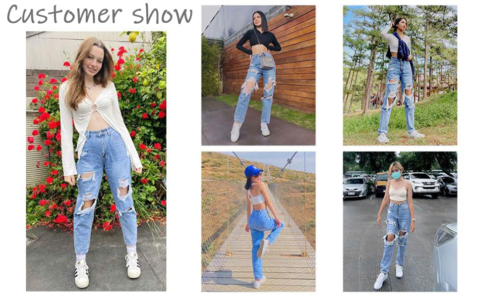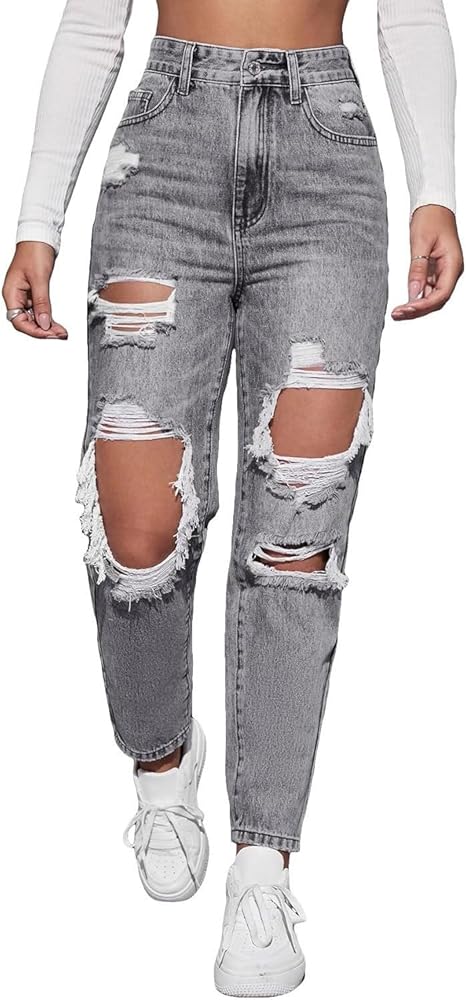 [ Feature ] High waisted, Zipper fly, Distressed, Ripped Jeans, Casual straight leg jeans for women