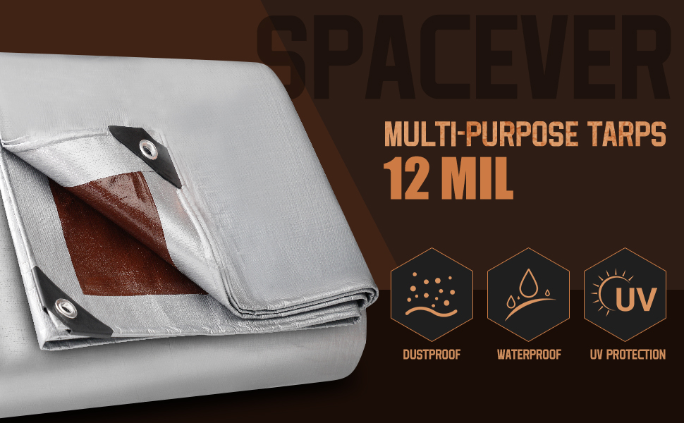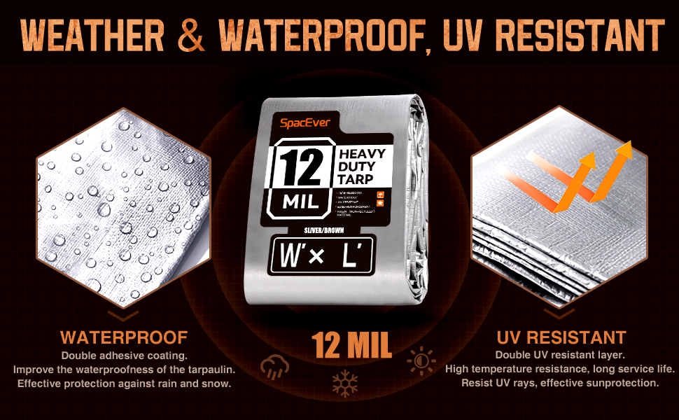 【Excellent Durability】 The tarps waterproof is made of high-quality PE material, durable and with excellent workmanship. Heavy duty tarp is 12 mil thick and can be used on both sides, waterproof, wind protection or not easy to tear.