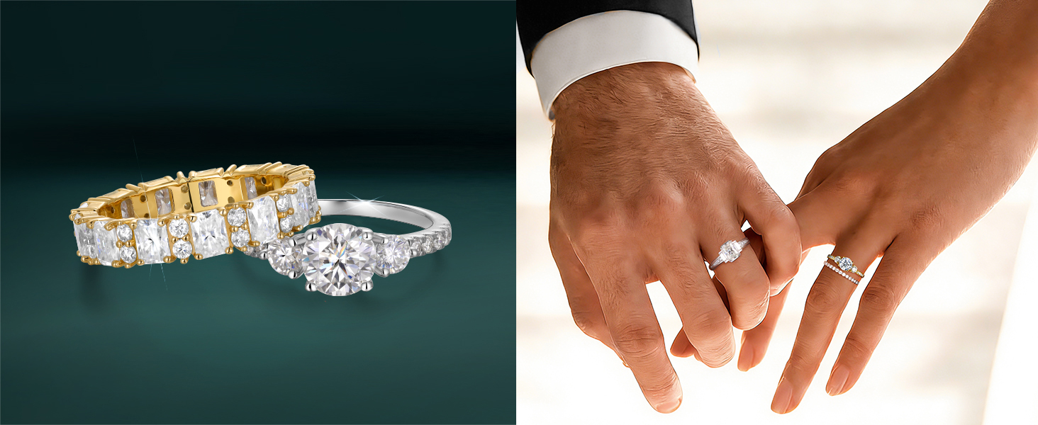 Hand setting moissanite rings for women : lab-created moissanite with exceptional brilliance and fire, brighter than diamonds while maintaining durability and clarity.