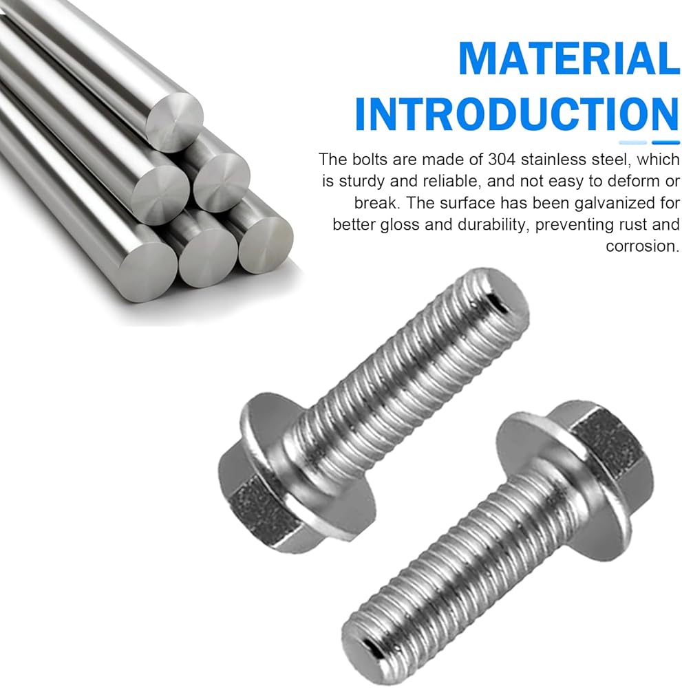 Premium 304 Stainless Steel: The bolts are maded from high-quality 304 stainless steel known for excellent resistance to high temperatures, rust, and wear. This ensures long-lasting durability and reliable performance even in demanding automotive environments.