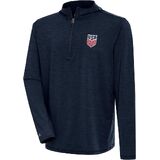 Elevate your everyday wardrobe with our updated take on the classic quarter zip pullover. This matte heather style now boasts an on-trend hood for a more modern appeal. The three-panel hood is perfectly designed to stay put, whether it's during a high-energy workout or cheering on your favorite team. Crafted from premium fabric for exceptional comfort, this lightweight design will keep you comfortable throughout the day. Featuring the US Mens National Soccer Team logo on the left chest.