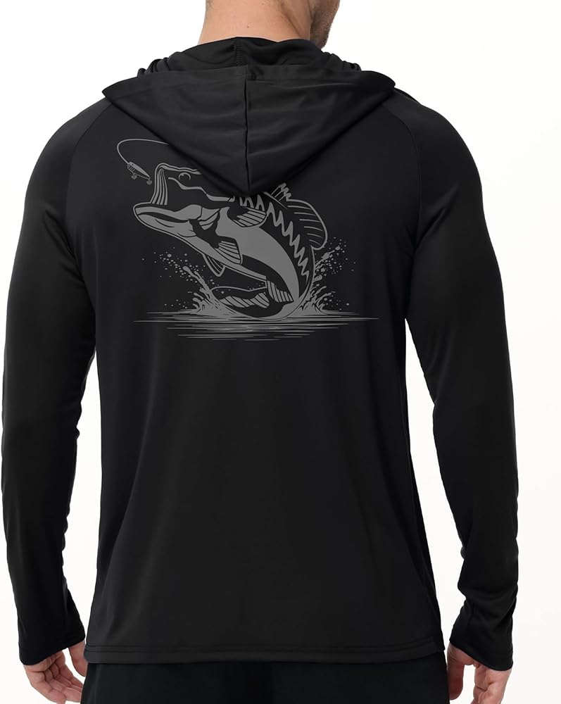 UNIQUE BACK FISH PRINT: Show your passion with our eye-catching back fish print. This design sets our hooded sun shirts for men apart, making it not just protective gear but a statement piece for every angler and outdoor enthusiast.
