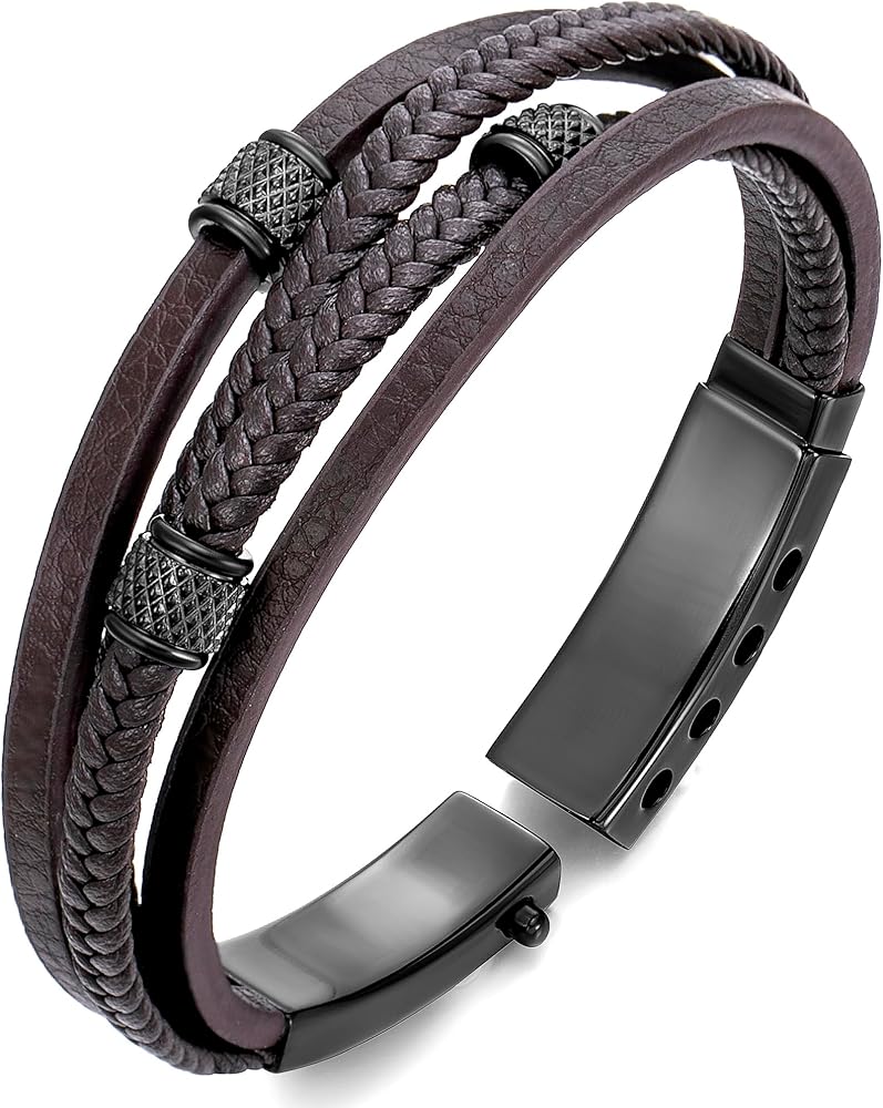 Murtoo “Shackles of Freedom" Bracelets for Men, Mens Braided Leather Bracelets with Black Chains and Magnetic Clasp