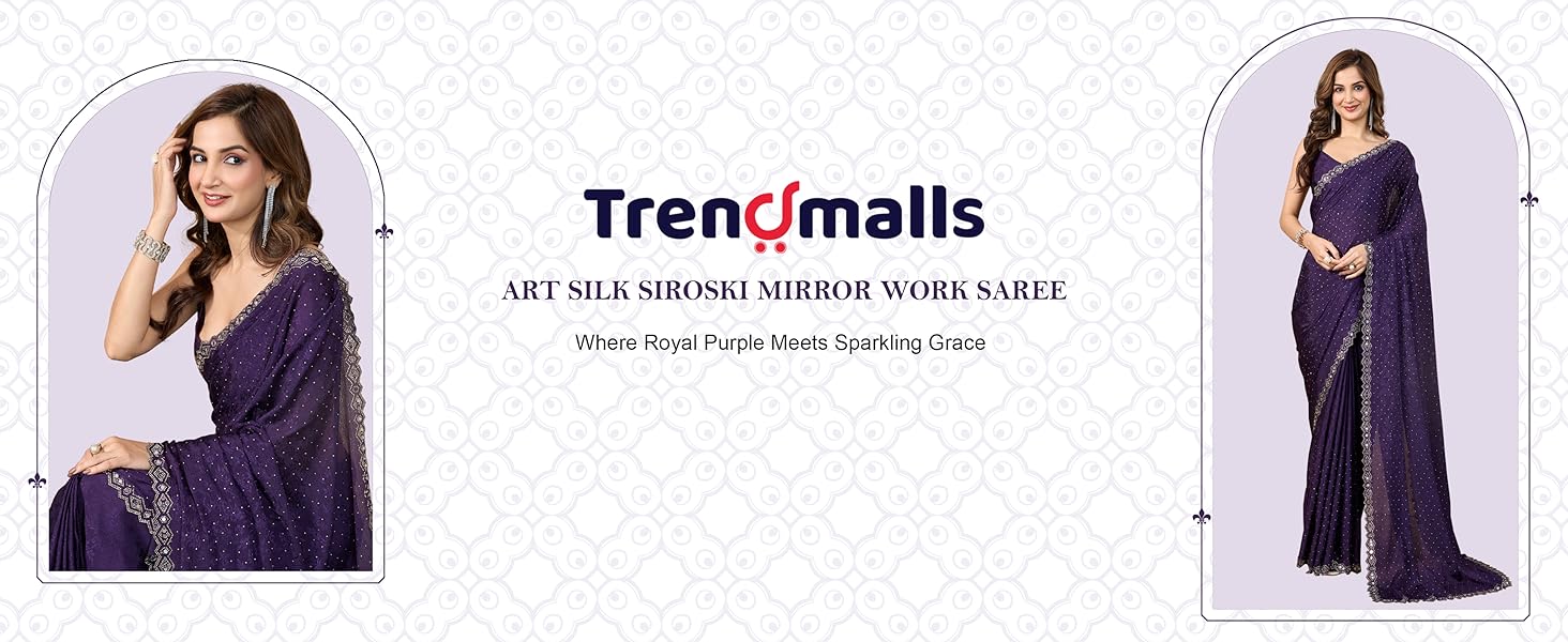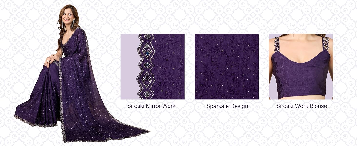 TRENDMALLS Women's Art Silk Siroski Mirror Work Saree with Unstitch Blouse Piece