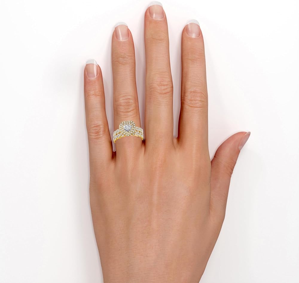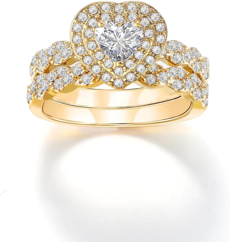 Romantic Bridal Ring Set for Women Crafted with 1CT high-quality cubic zirconia, this wedding ring set shines like a diamond at an affordable price. The yellow gold plated coating ensures long-lasting brilliance, making it ideal for Valentine's Day, proposals, or anniversaries.