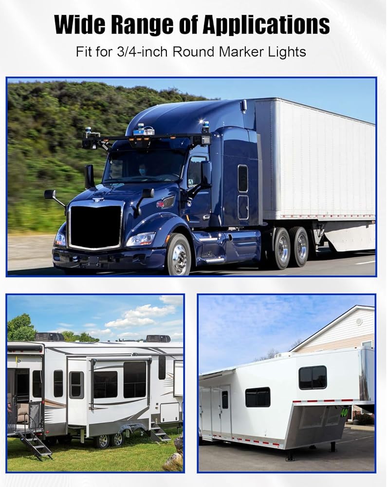 Wide Compatibility: Specifically fit for 3/4-inch round marker lights, compatible with 3/4 Inch Marker/Clearance Lights on various trailer truck, meeting the needs of bulk installation