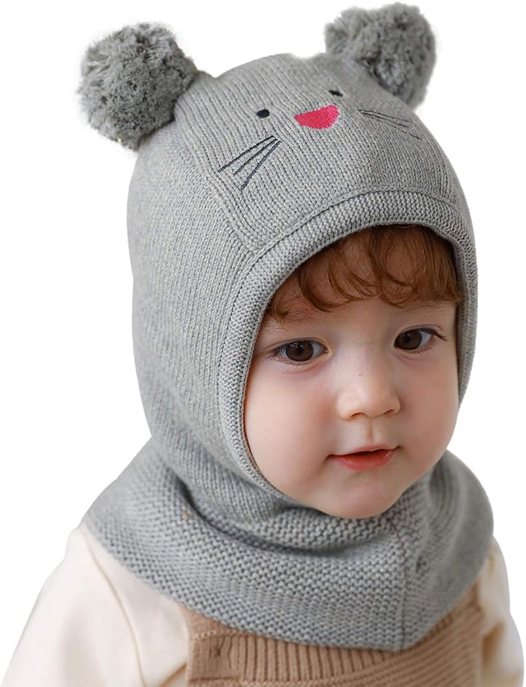 Simple and cute style: single color, embroidery for animal face, hat top with handmade pom