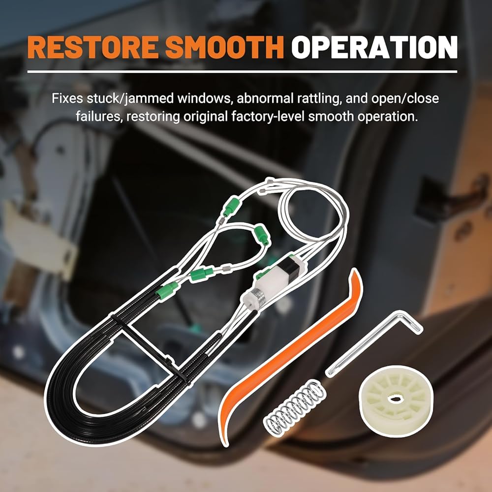 【Restore Smooth Operation】This repair kit fixes stuck/jammed windows, abnormal rattling, and open/close failures by replacing worn cables and broken clips, restoring original factory-level smooth operation.