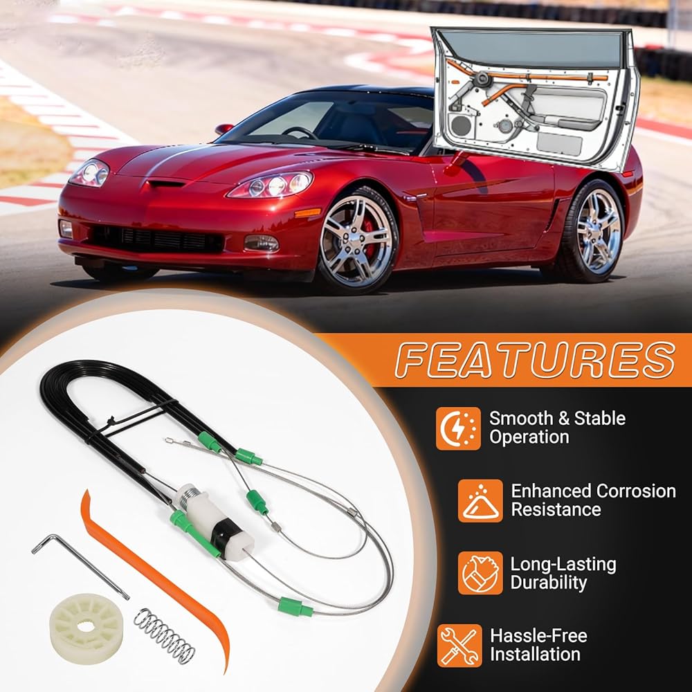 【Specific Compatibility】This window regulator repair kit is compatible with 2005-2013 Chevrolet Corvette C6: Coupe, Convertible, Z06, ZR1, Grand Sport models. Position: Front right side.