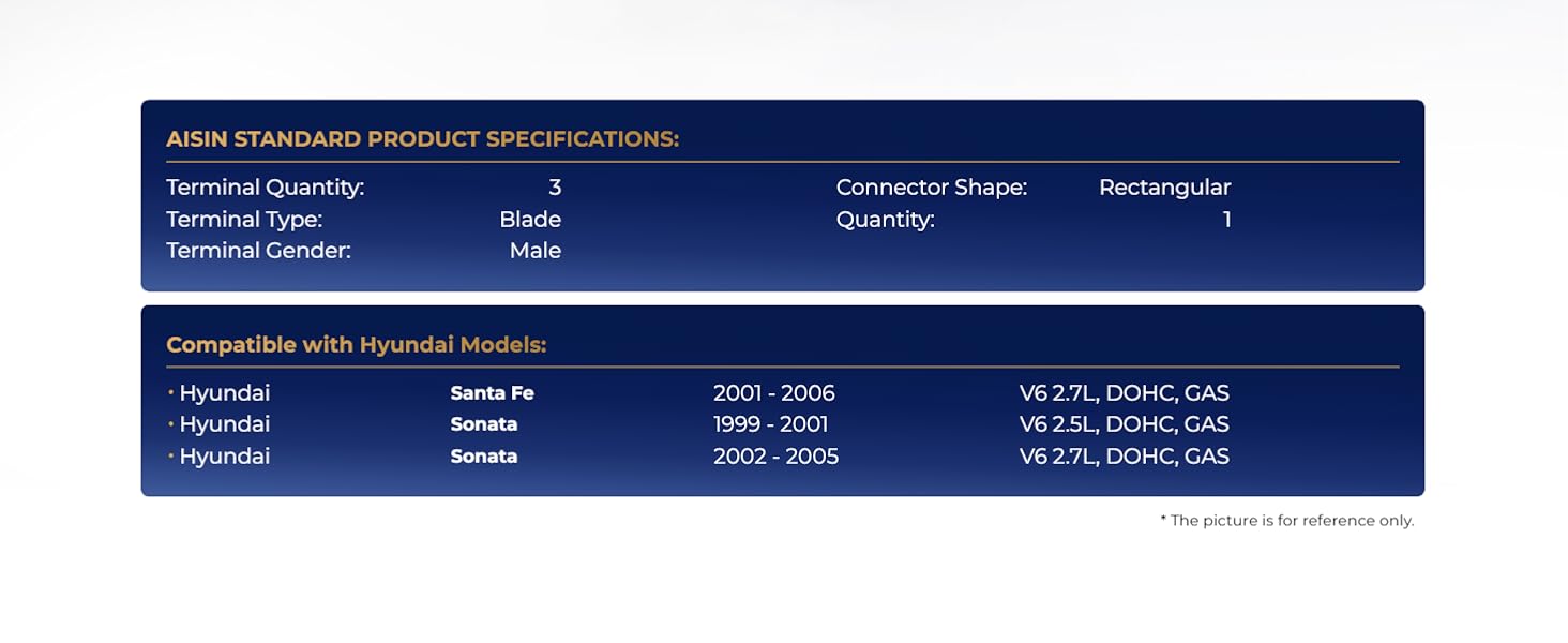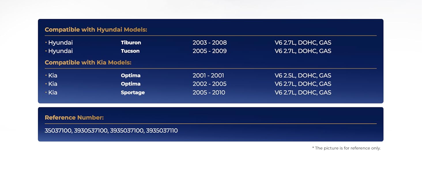 [Compatibility] - Compatible with Hyundai Sonata 1999-2005, Santa Fe 2001-2006, Tucson 2005-2009, Tiburon 2003-2008, Kia Optima 2001-2005, Sportage 2005-2010 - 2.5L 2.7L
