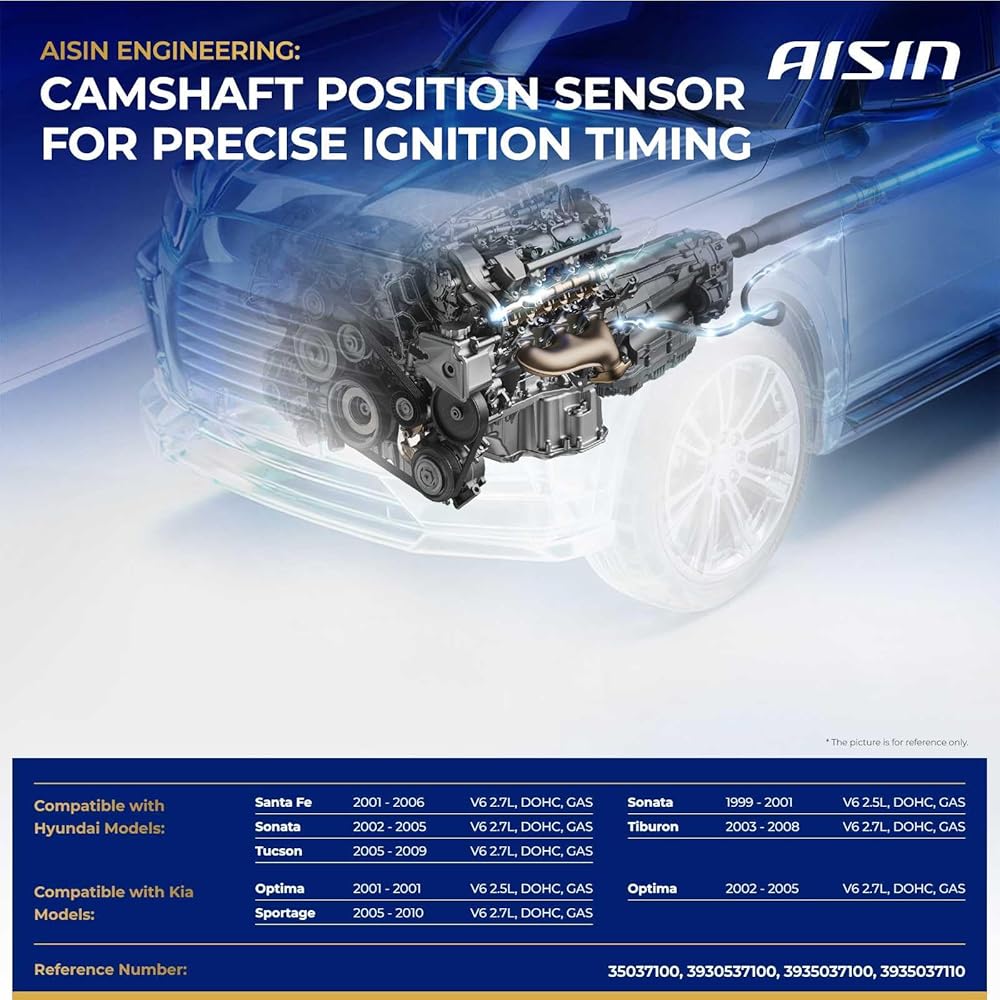 AISIN CMSAZ-00142 Engine Camshaft Position Sensor - Compatible with Hyundai Sonata 1999-2005, Santa Fe 2001-2006, Tucson 2005-2009, Tiburon 2003-2008, Kia Optima 2001-2005, Sportage 2005-2010