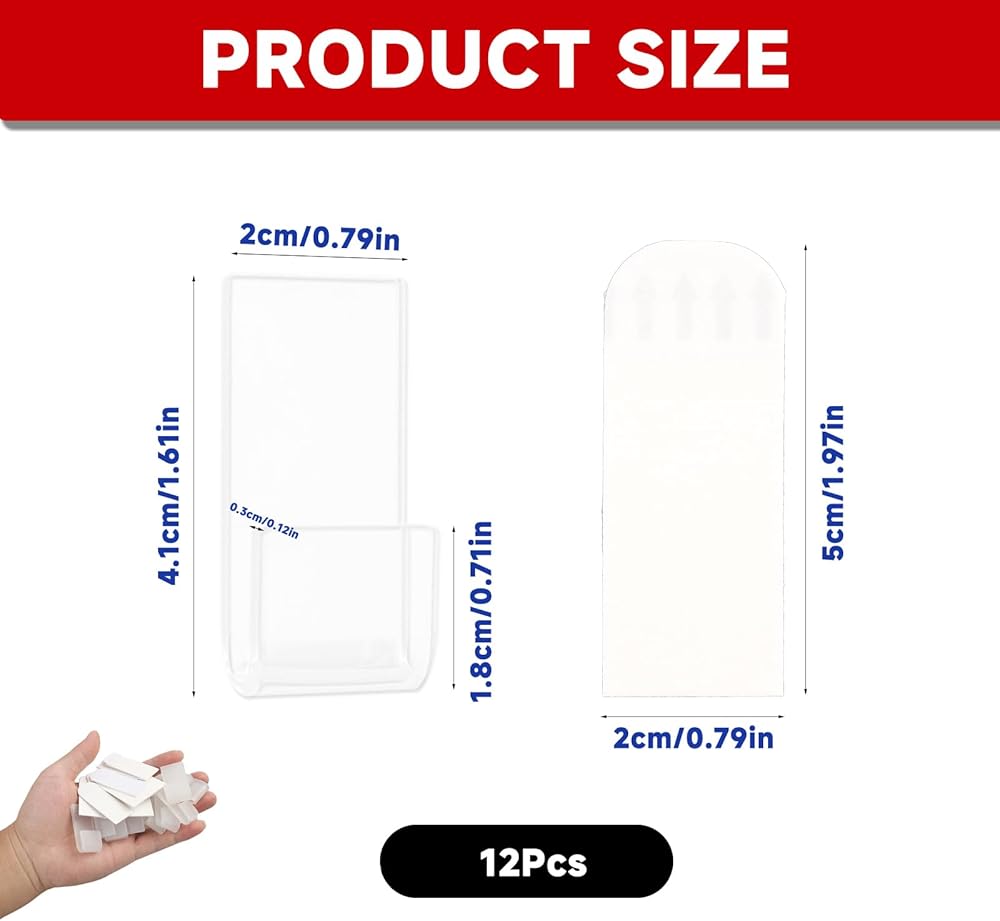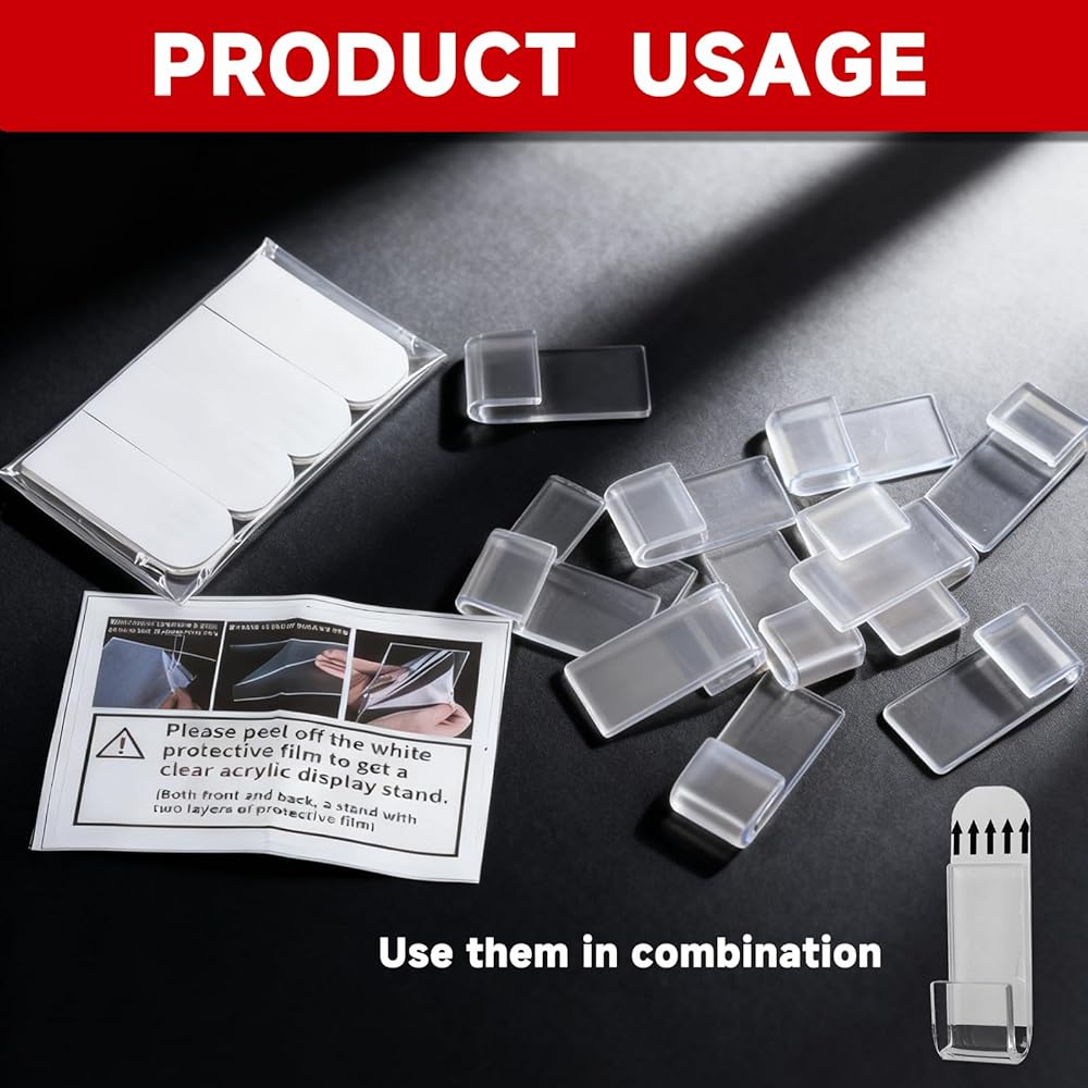 Each holder is 1.57in*0.78in—small enough to stay out of the way, but sturdy enough to hold album covers upright. The transparent acrylic is a game-changer: it doesn't block the artwork, so your David Bowie or Taylor Swift covers shine through, and it blends with any wall color—white, gray, even bold accent walls. Installation is a breeze, too: peel the backing off the included adhesive tape, stick the holder to a clean wall, and slide your album cover into place—no tools, no mess, no wall damage (perfect for renters who can't drill).