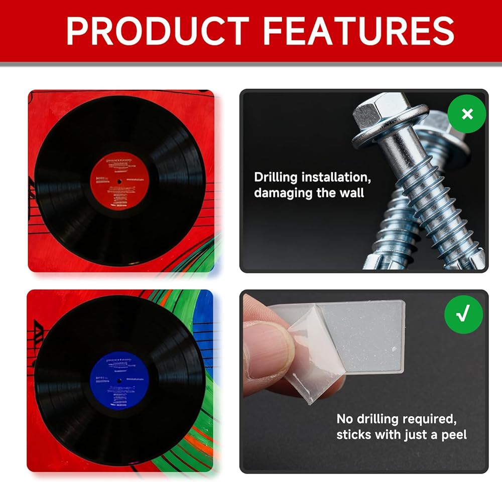 For anyone who's ever hesitated to drill holes for decor, these vinyl record wall mount holders solve that problem. They hold album covers securely—no slipping or falling—and the clear design keeps the focus on your music, not the holder. Whether you're a casual collector with a few favorite albums or a serious vinyl fan with a shelf-full, these holders turn your music into art that everyone can see and enjoy. Just remember: stick to lightweight album covers—they're not for heavy vinyl discs themselves—and keep them away from damp spots to keep the adhesive strong.