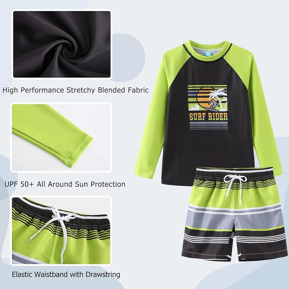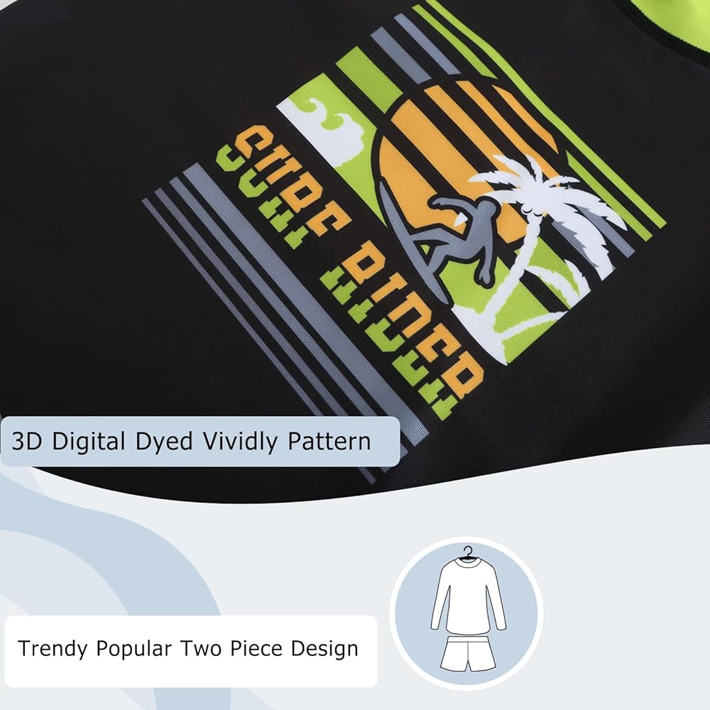 Boys Long Sleeve Rash guard Swimsuits Set UPF 50+/Sun Protection Swim Shirt Kids Two Piece Bathing Suits Swimwear Set 6-14 Years