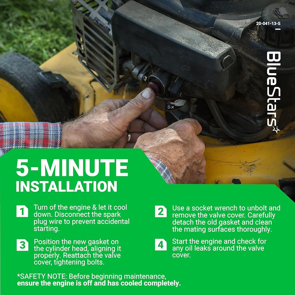 PROTECT ENGINE COMPONENTS: BlueStars 20-041-13-S Valve Cover Gasket helps protect internal engine components from dust, dirt that can cause damage and reduce performance. It also seals the engine oil, preventing it from leaking and ensuring that your engine stays lubricated and functioning at optimal levels.