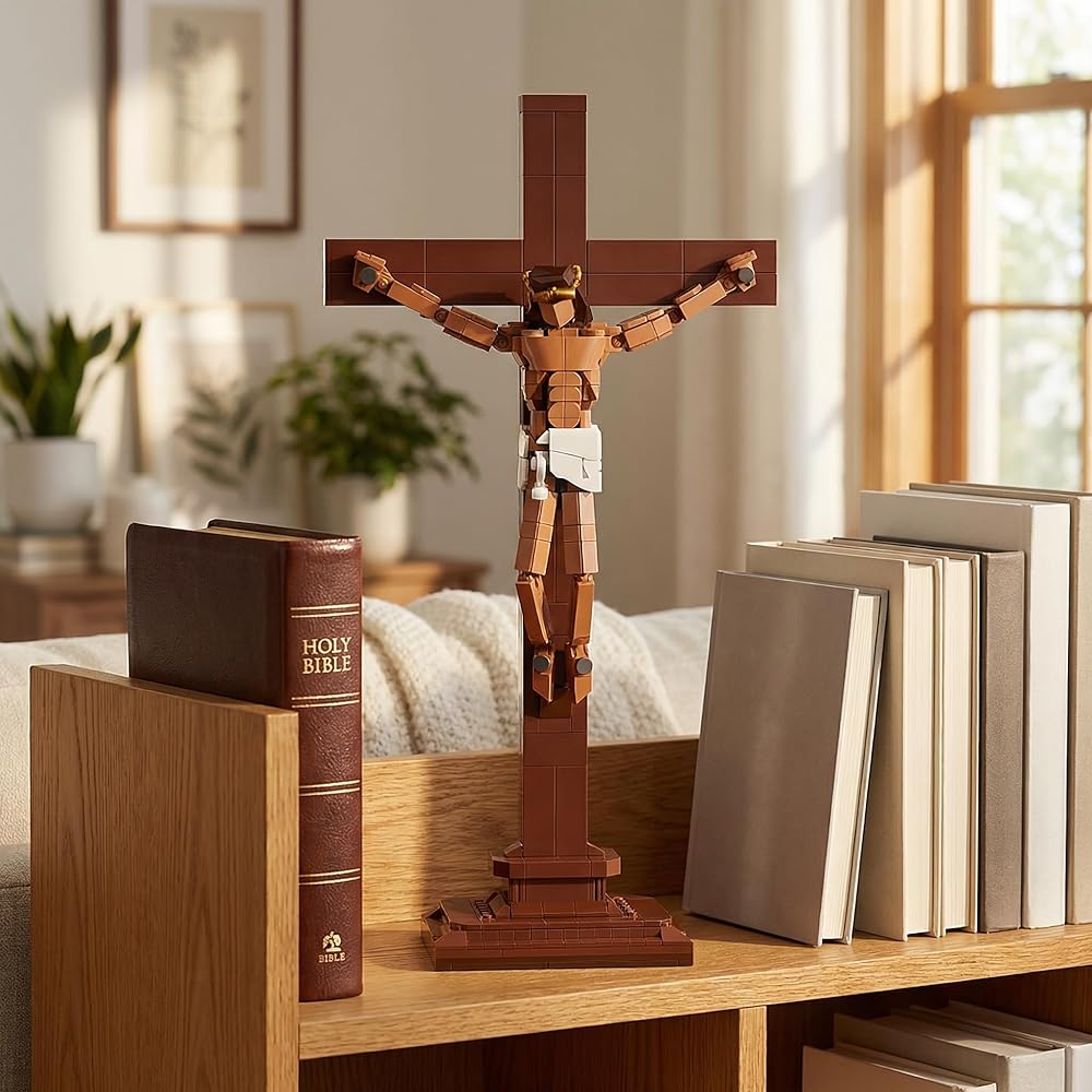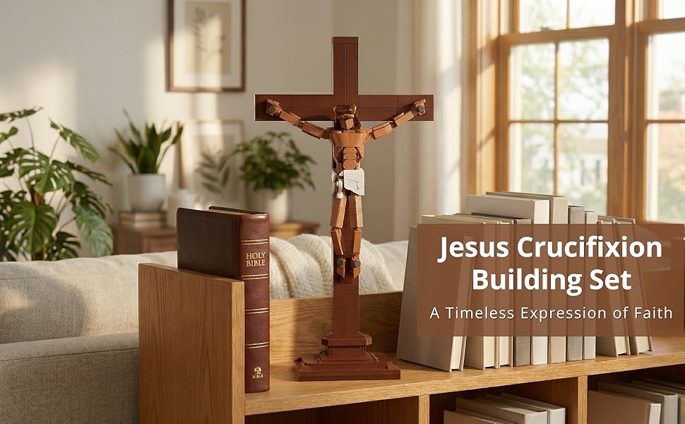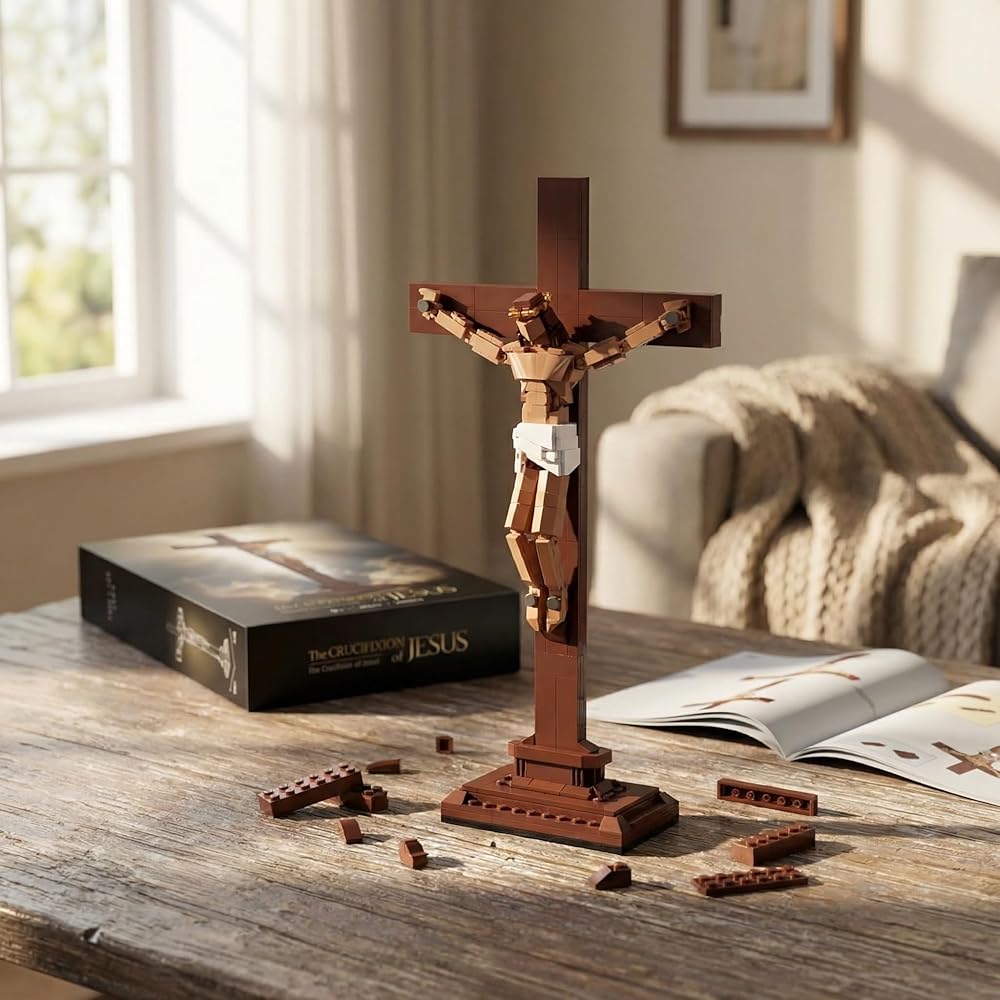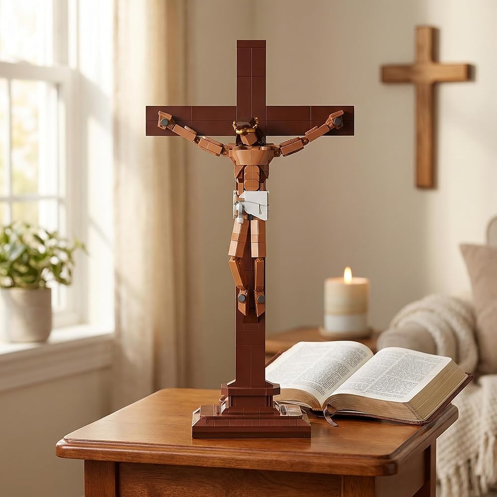 Jesus Crucifix Building Set, Christian Cross Display Model (588 Pieces), Faith-Based Religious Decor Statue for Home & Office, Christian Gift for Easter, Lent & Confirmation