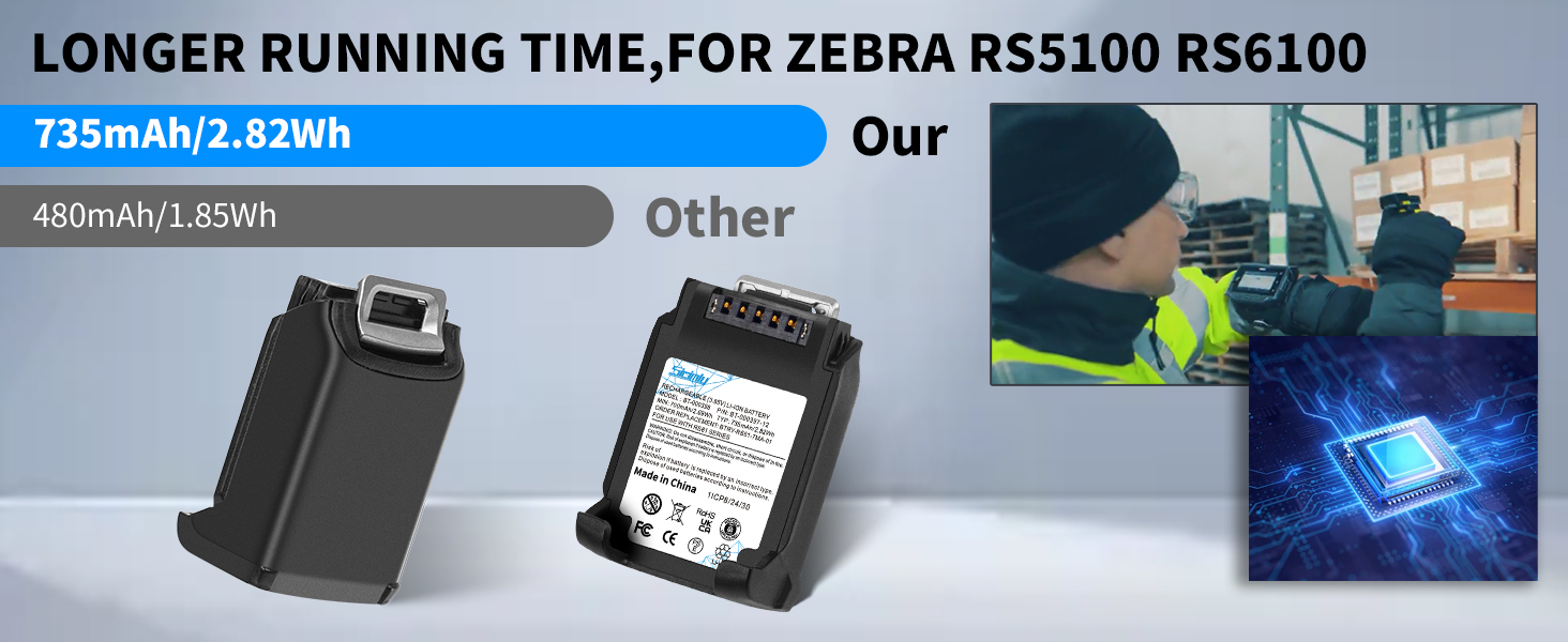 For Zebra RS6100 Battery: rs5100 rechargeable battery for zebra,Durable & reliable casing protects against drops/shocks in demanding environments.