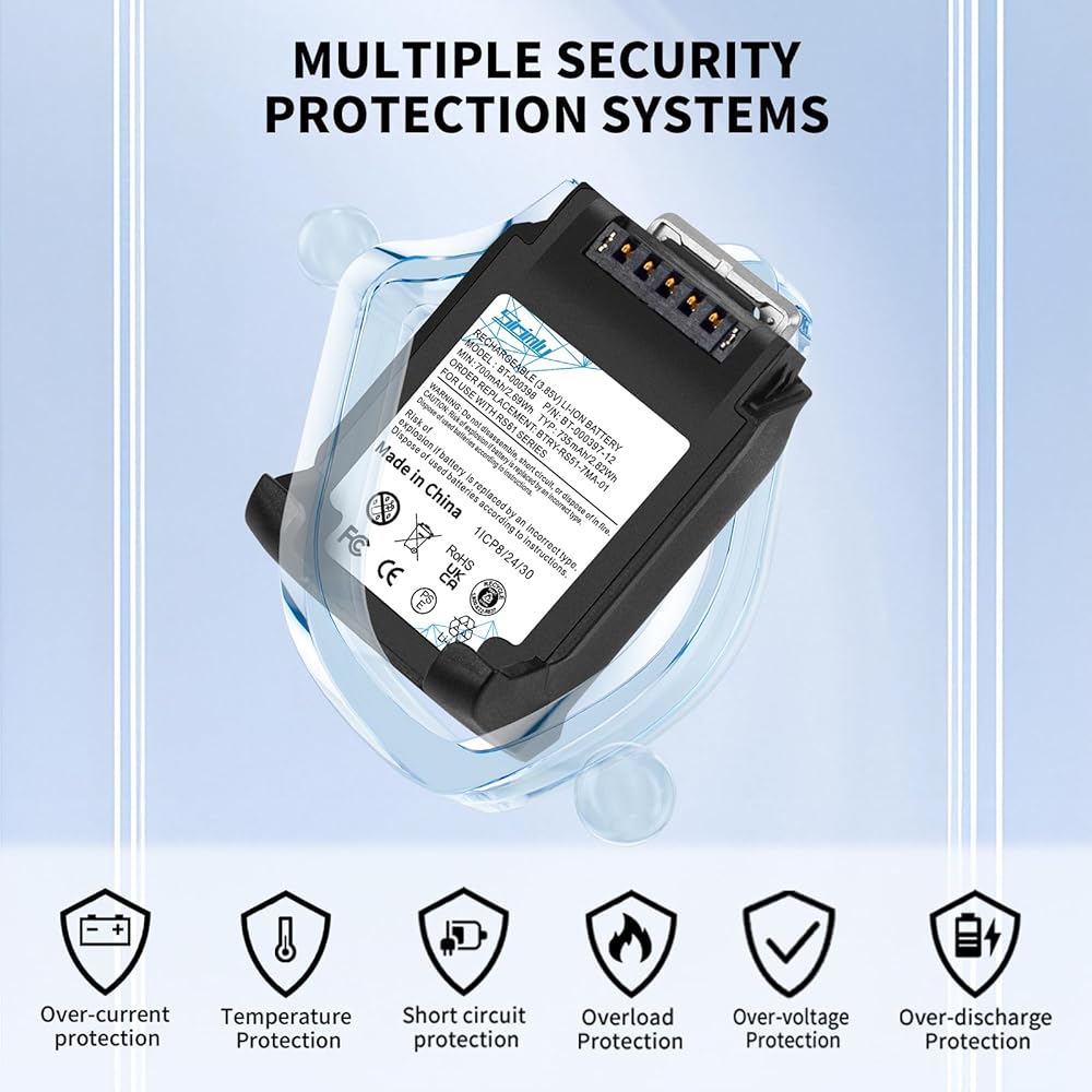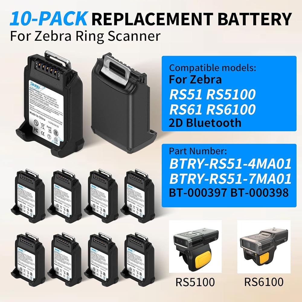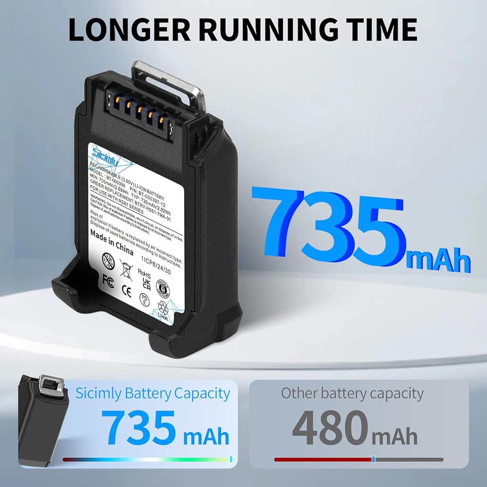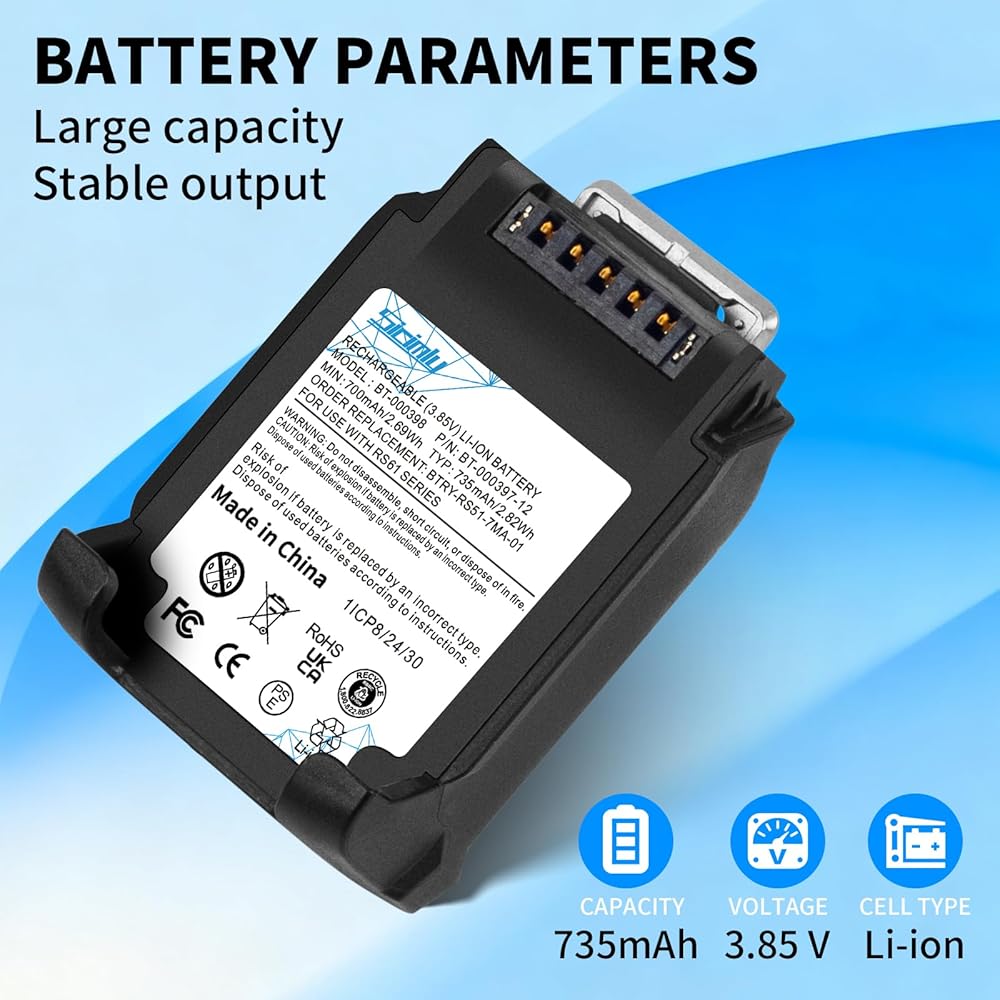 735mAh For Zebra RS5100 Battery:Perfectly compatible with original scanner device for Zebra RS51 RS5100 RS61 RS6100 RSBT5 RS61B0 RS61C0 RS51B0 RS51C0.Certified optimal performance for Zebra RS5100 ring scanners – matches OEM specs 100%.