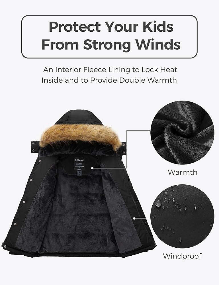 Quality Zippers - With its SBS zipper, the Wantdo kids boys' parka winter coat ensures durability and safety, providing long-lasting use against wear and tear.