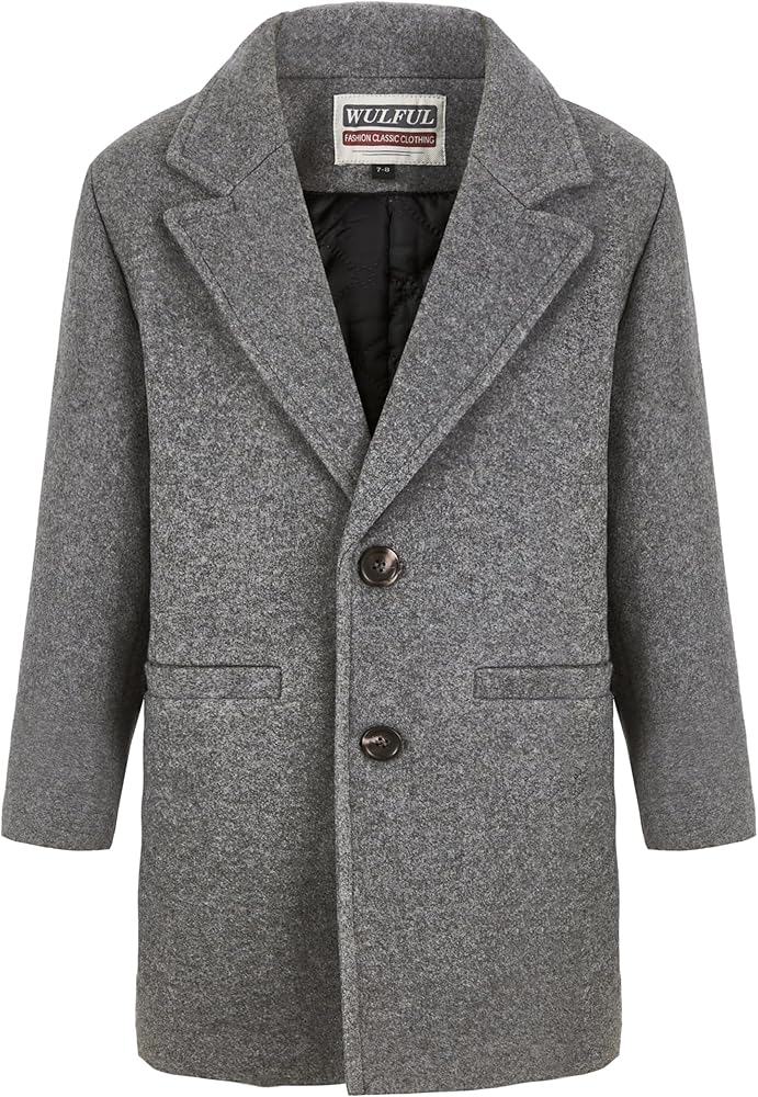 Features:Single breasted boy wool coat,buttons closure,two side bottom pockets,big enough to store your kids' cards and small items.Scientific tailoring,classic fit,make your boys elegant wearing this wool coat.