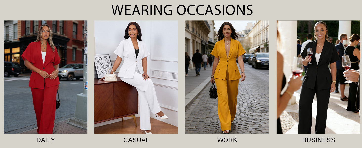 Occasion:Two-piece sets for women are the ideal attire for formal events,offices,meetings, daily,business casual settings,party,weddings,and special occasions.The suit sets easily match with different accessories,shoes,and jewelry to complete your look.