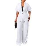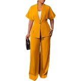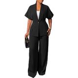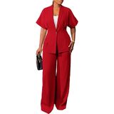 Design:The women suits include a short sleeve blazer and straight-leg pants.The blazer features chic cap sleeve and sexy lapel v neck designs,adjustable tie-waist belt provides women with the possibility of shaping a curves figure,a button.The matching bottoms have a elasticized waist,and straight legs with side pockets.