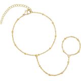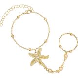 Ring Hand Chain Stylish Bracelet: This gold bracelet stands out from ordinary bangles, elegantly extending from the wrist to the finger. The delicate and minimalist hand chain design exudes grace and femininity. The combination of gold chain, gold beads, starfish, butterflies, and other chic elements creates a unique look, with its eye-catching design adding a touch of glamour to any outfit.