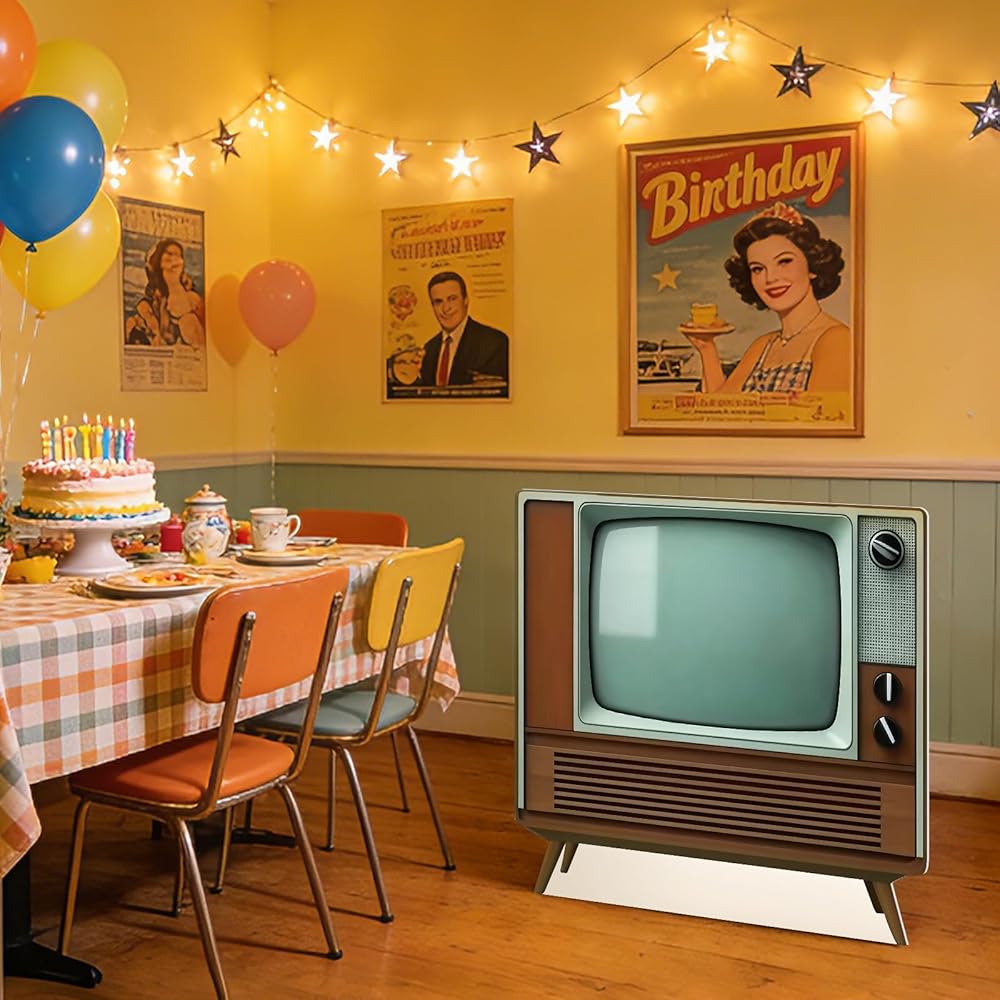Our retro TV standee measures 30.7 inches tall and 27.6 inches wide, creating a commanding, eye-catching presence.