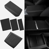 2026 Center Console Cover for Tesla Model Y Juniper 2025 & Model 3 Highland Accessories Set - Black Armrest Cover Wireless Charging Center Console Static Cling Pad Adhesive-Free 3 PCS Black