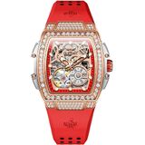 OUPINKE Automatic Womens Watches Luxury Diamonds Hollow Skeleton Squre Mechanical Womens Watches Fashion Dress Waterproof Luminous Rose Gold Ladies Watches Soft Silicone Strap Red Black White