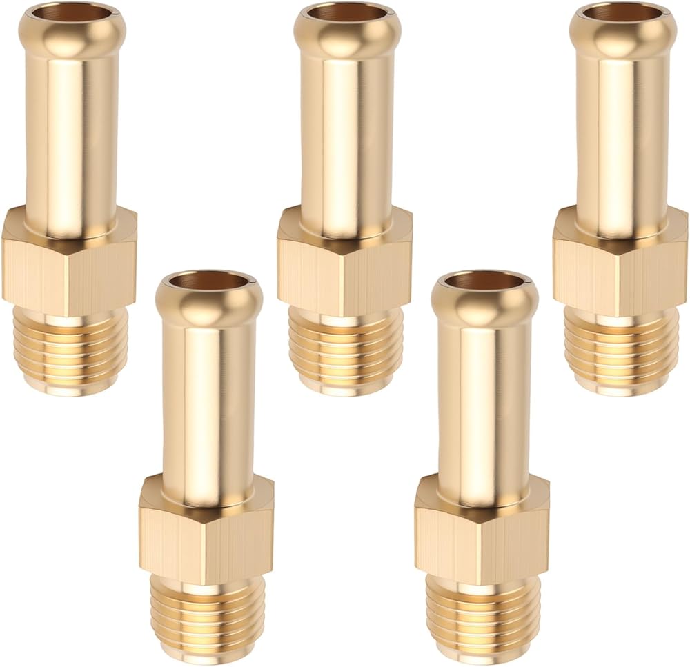 5PCS 3/8" Fuel Line Fittings,Leak-Proof Brass 3/8" Barb Fitting with 1/2-20 Male Threads for Hose Connector,Universal Fuel Line Connector for Automotive Repair & Equipment Use