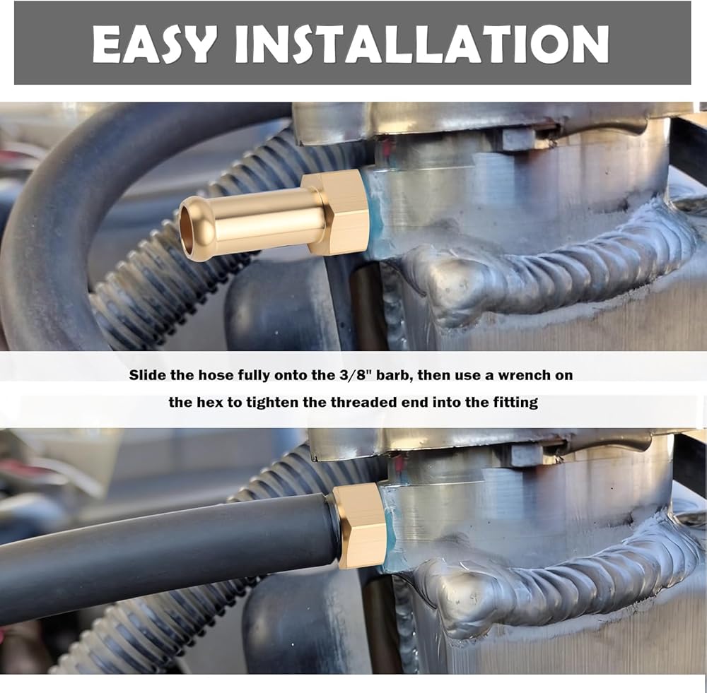 Easy Installation: When installing a 3/8 hose barb, first insert the hose over the barb end, allowing it to slide in sufficiently deep. Then, grip the hex section with a wrench and screw the threaded end into the target fitting, tightening it moderately