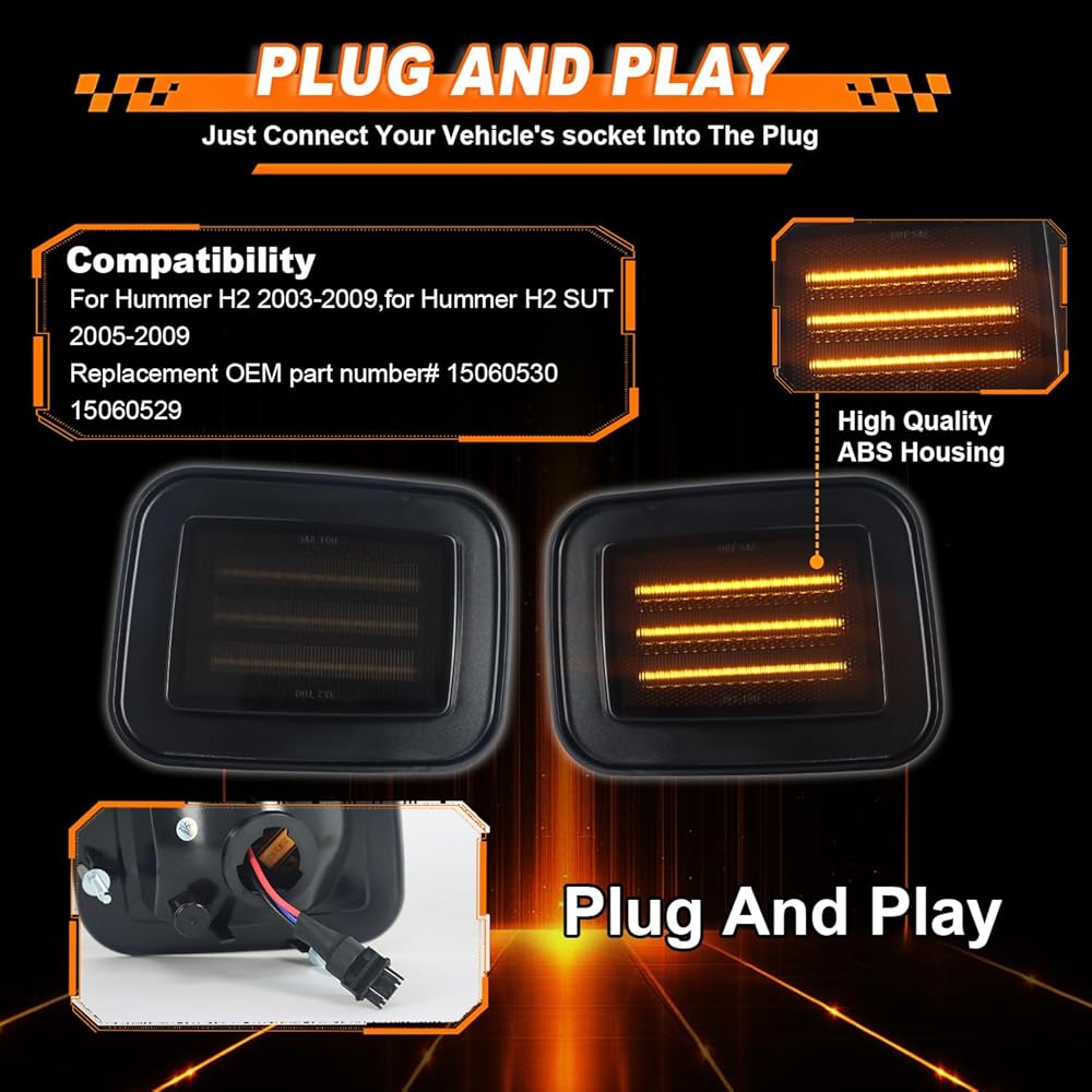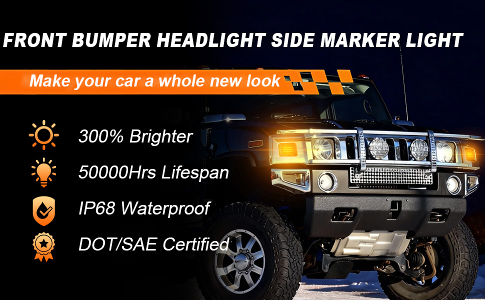 【Perfect Fit for Hummer H2 (2003-2009)】Direct replacement LED front bumper Headlight side marker light designed SPECIFICALLY for Hummer H2 2003-2009,for Hummer H2 SUT 2005-2009 (Please check your vehicle model before purchase this light) ✅ Replace OEM Number# 15060530 15060529. Guaranteed fitment.