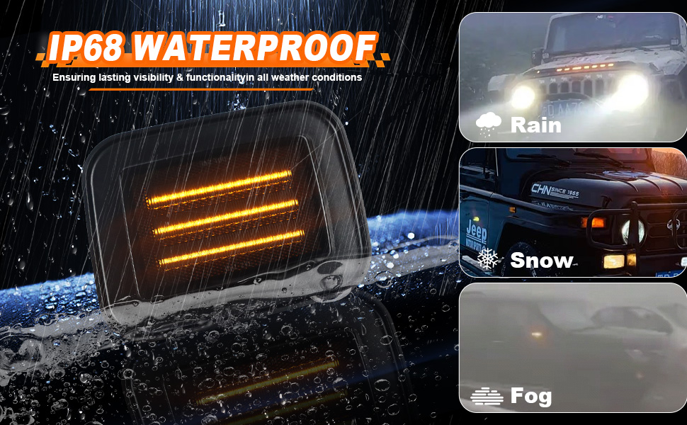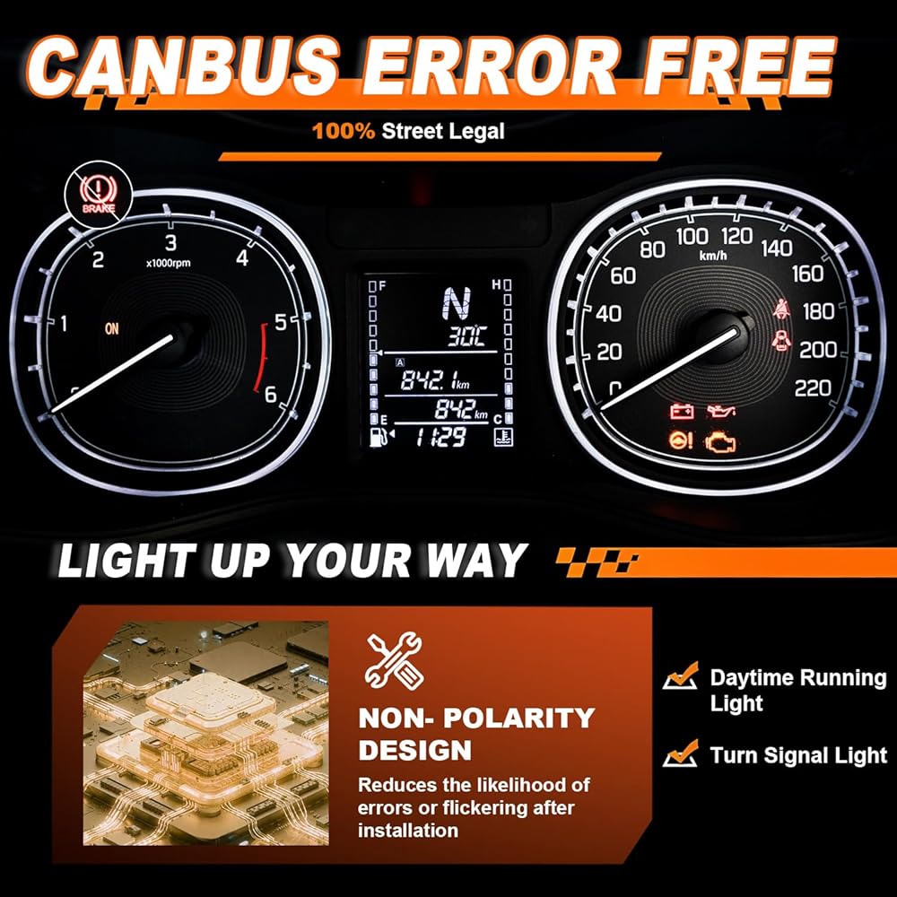 【Super Bright LED & Stylish Upgrade】Features high-power LED chips delivering ultra-bright amber&white light – **5X BRIGHTER** than stock bulbs! Significantly enhances front visibility and safety at night or in low light. The Light adds on the white Daytime Running Light & Amber Turn Signal Light all in one.