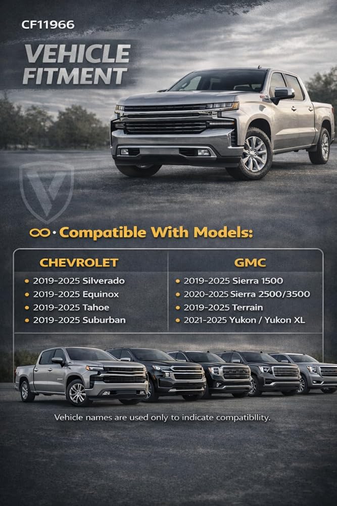 [Vehicle Fitment] - Fits for GMC Acadia 2020-2023 (L4-2.0L) & 2017-2021 (L4-2.5L) & 2024-2026( L4-2.5L) & 2017-2023 (V6-3.6L), Canyon 2015-2022 (L4-2.5L/V6-3.6L) & 2023-2025 (L4-2.7L) & 2016-2022 (L4-2.8L), Hummer EV Pickup 2022-2025 (All), Hummer EV SUV 2024-2026 (All), Sierra 1500 2019-2025 (L4-2.7L/V8-5.3L/6.2L) & 2019-2021 (V6-4.3L), Sierra 1500 Limited 2022 (L4-2.7L/L6-3.0L/V8-5.3L/6.2L), Sierra 2500 HD 2020-2025 (V8-6.6L), Sierra 3500 HD 2020-2025 (V8-6.6L), Terrain 2018-2026 (L4-1.5L) & 2018-2019 (L4-1.6L) & 2018-2020 (L4-2.0L), Yukon 2021-2025 (L6-3.0L/V8-5.3L/6.2L), Yukon XL 2021-2025 (L6-3.0L/V8-5.3L/6.2L).