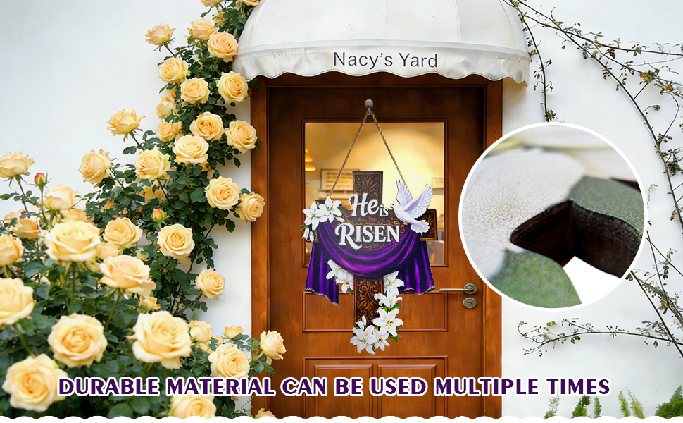 ⭐Larger Size for Better Visibility Measuring 37 × 29 cm (14.6 × 11.4 inches), this Easter door sign is larger than most similar cross decorations, making it more noticeable and eye‑catching on front doors, walls, and porches.