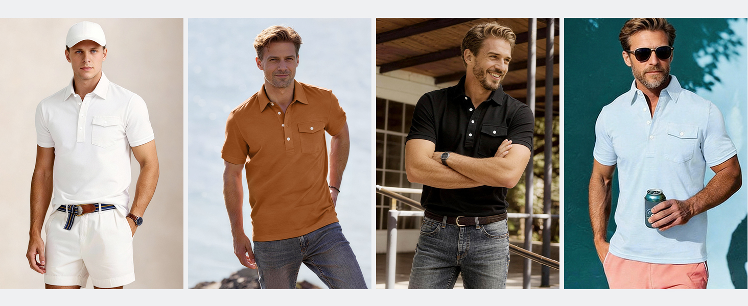 Chest Pocket with Quick-Dry Design: The refined left chest pocket combines style with practicality, securely holding small essentials like sunglasses, cards, or keys. Crafted from advanced functional fabric, it features quick-dry properties. Enhanced breathability ensures a fresh feel all day long, making it perfect for both workouts and travel