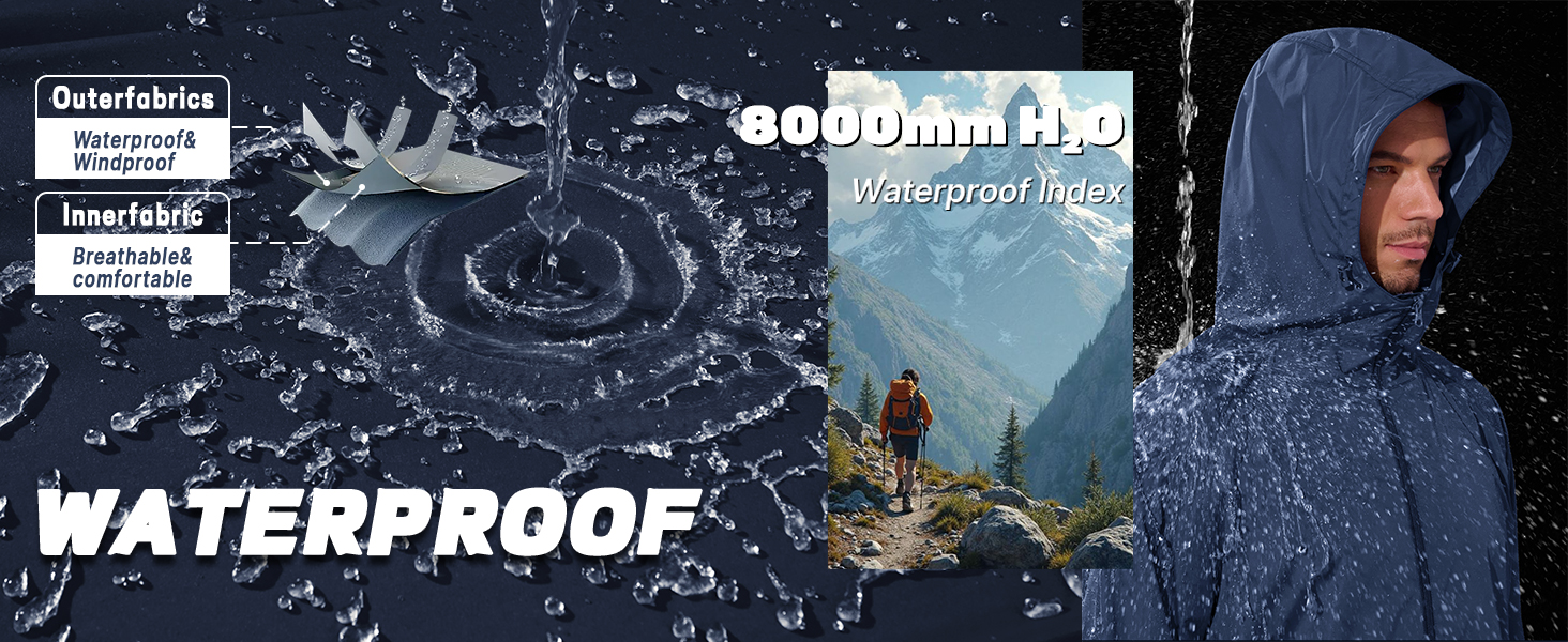 100% Waterproof, Windproof & Scratch-Resistant Fabric – Made from 100% polyester, this rain jacket men features a fully waterproof, windproof, and scratch-resistant design, delivering reliable protection in harsh outdoor weather conditions.