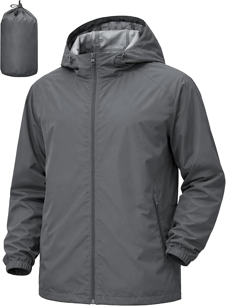 Lightweight & Packable for Easy Carrying – This mens rain jacket comes with a portable storage bag, allowing you to fold it compactly and carry it effortlessly, making it a practical rain jacket for travel and daily outdoor use.