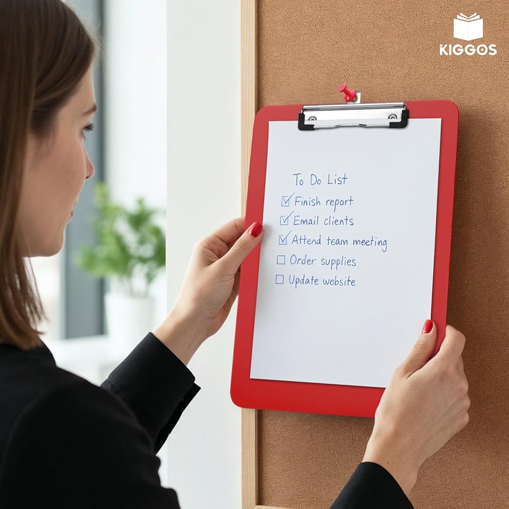 The Kiggos Red Plastic Clipboard delivers dependable performance for school, office, and professional use. Constructed from durable, lightweight plastic, the clip board offers a smooth, sturdy writing surface while remaining easy to carry throughout the day. The clip boards 8.5x11 surface is constructed with a strong low-profile metal clip securely holds up to 100 sheets of paper, making it ideal for paperwork, forms, checklists, exams, and daily tasks. The bright red color allows for quick identification and easy organization, whether used in classrooms, medical settings, warehouses, or on the road. The law enforcement gear acrylic clipboard is designed for students, professionals, truckers, school bus drivers. This clipboard is a practical, reliable tool for staying organized anywhere.